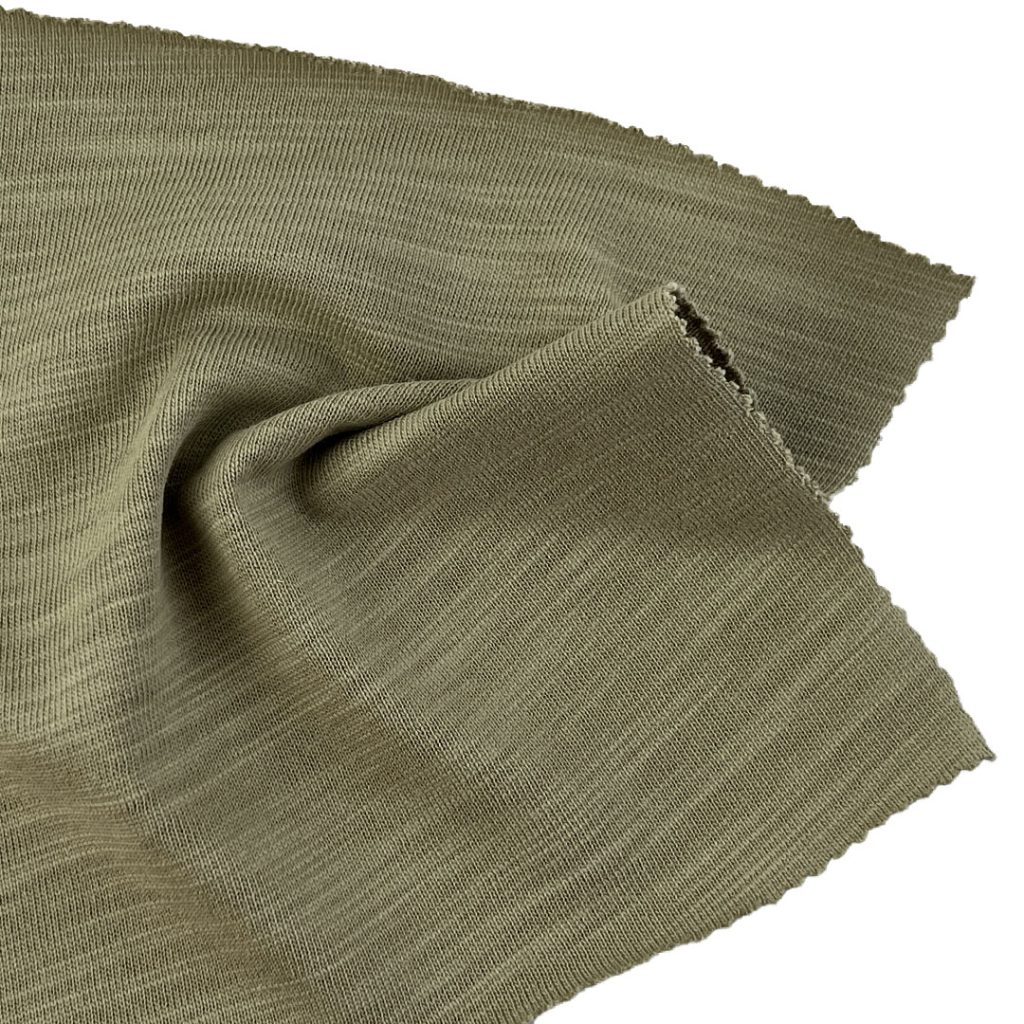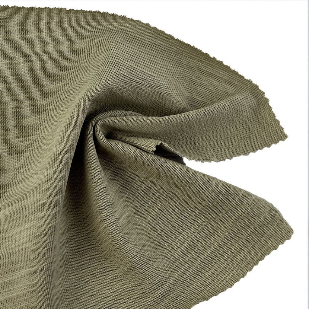 Discover the perfect balance of texture and refinement with our 240gsm Single Jersey Slub Fabric, crafted from 100% premium cotton. This distinctive fabric combines the comfortable stretch of single jersey construction with the unique aesthetic of slub yarns, creating a material that offers both a crisp hand feel and a smooth surface texture. The intentional slub variations add visual depth and a subtle, irregular texture to the fabric, while maintaining an overall polished appearance. Weighing 240gsm, this medium-weight fabric provides excellent structure and drape, making it ideal for a variety of garments including dresses, sleepwear, long sleeve shirts, and T-shirts. The all-cotton composition ensures superior breathability and softness, while the crisp quality helps garments maintain their shape and resist wrinkling. The smooth surface feels gentle against the skin, making it particularly suitable for sleepwear and everyday shirts. Easy to care for and machine washable, this fabric becomes even softer with each wash while retaining its unique textured character and vibrant colors. Whether designing elegant sleepwear for restful nights, casual dresses for daytime outings, or versatile shirts for everyday wear, this Single Jersey Slub Fabric delivers a sophisticated combination of comfort, style, and practical functionality.