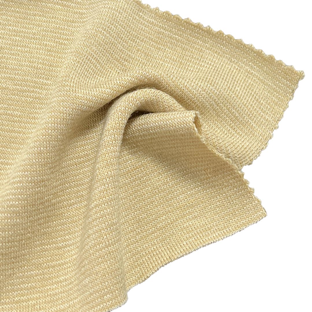 Experience the perfect fusion of luxury and comfort with our 240gsm rib knit fabric, expertly crafted from a refined blend of 2% Silk, 8% Acetate, 4% Wool, 25% Viscose, 12% Acrylic, 44% Polyester, and 5% Spandex. This premium fabric features a distinct ribbed texture that adds visual depth and structural interest while delivering an exceptionally soft hand feel that enhances wearability. Silk contributes a natural sheen and smooth elegance, Acetate adds a luxurious drape and subtle luster, Wool provides gentle warmth and a delicate touch, Viscose ensures breathability and moisture-wicking comfort, Acrylic offers lightweight insulation and softness, Polyester enhances durability, shape retention, and wrinkle resistance, and Spandex provides gentle stretch and excellent recovery.