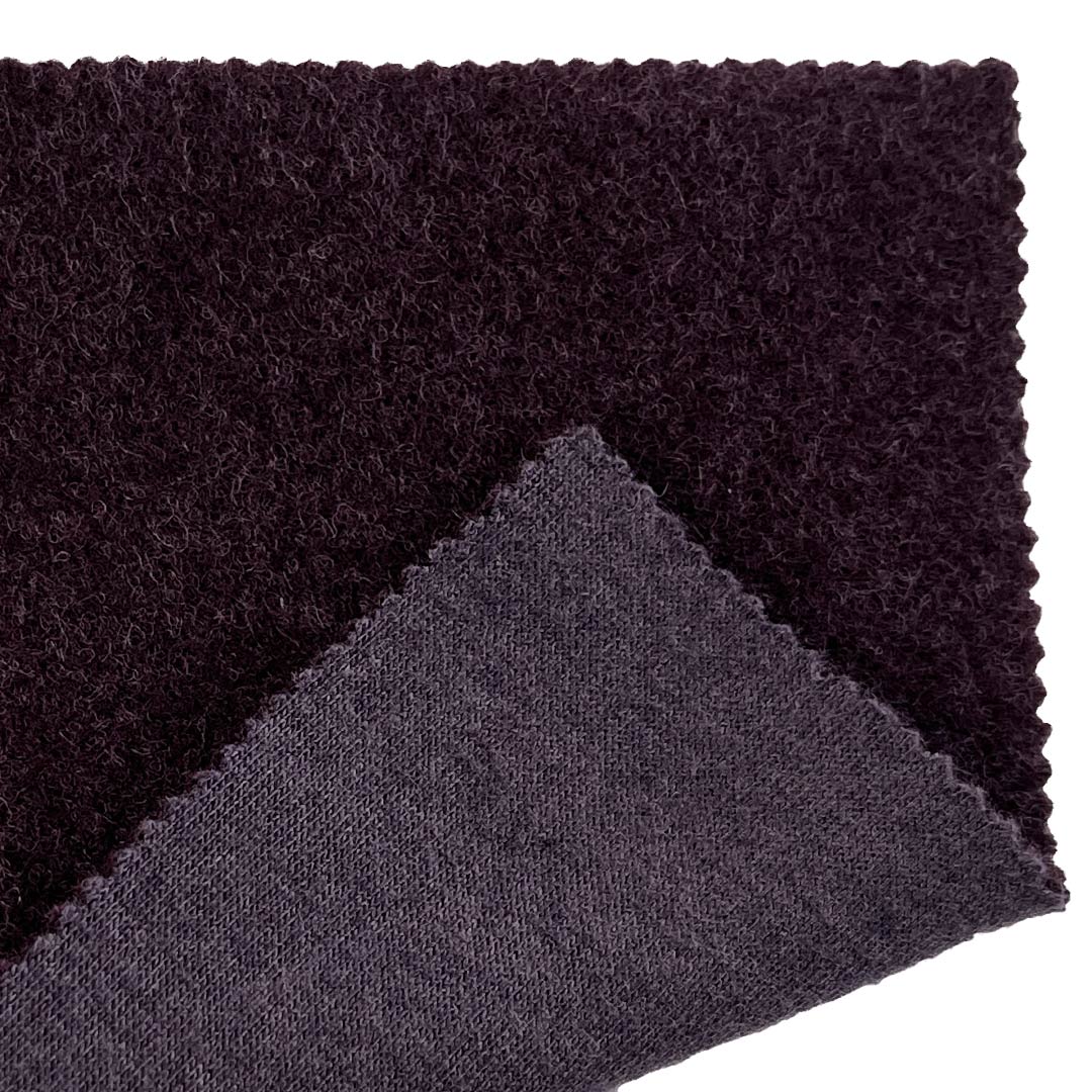 The back side consists of 20% Polyester and 80% Viscose, providing a smooth, moisture-wicking interior that enhances comfort against the skin. This Bonded Boiled Wool Fabric integrates bonding technology with the traditional boiled wool process on the front layer, resulting in a fabric that combines structural integrity with flexible movement. Weighing 240gsm, this Medium-weight Boiled Wool Fabric delivers balanced warmth and breathability, ideal for transitional and cool-weather apparel. The bonded structure adds stability and wind resistance, while the two-layer design allows for versatile styling—front for outer aesthetics, back for inner comfort.
