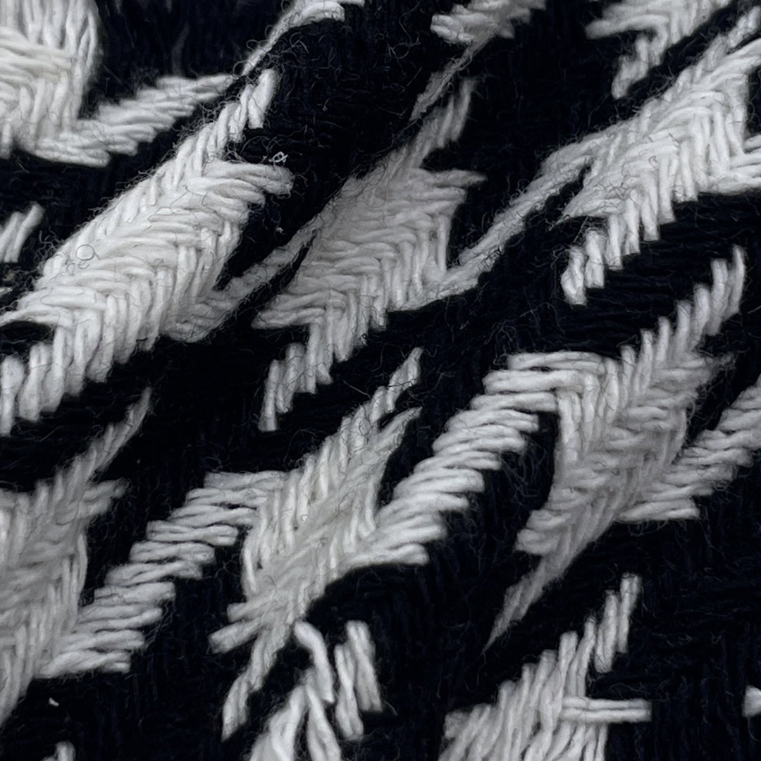 Crafted from 100% Polyester with a substantial weight of 250gsm, this Houndstooth Fabric offers an ideal balance of structure and elegance for diverse applications. The classic houndstooth pattern creates a sophisticated textured surface that adds visual interest and depth to any design.