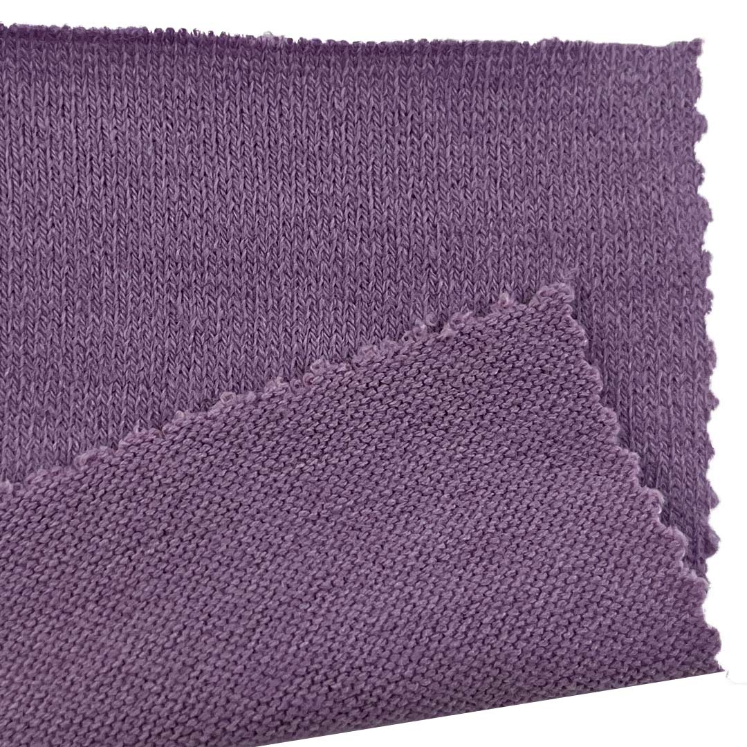 Bamboo fibers provide natural breathability, moisture-wicking properties, and a silky texture, while polyester ensures excellent shape retention, color vibrancy, and resistance to wrinkles and pilling. The 3% Spandex adds gentle stretch and recovery, allowing for comfortable movement and a flattering fit. Weighing 250gsm, this fabric provides substantial warmth and coverage without feeling bulky, making it suitable for transitional seasons and cooler weather. The brushed surface enhances the fabric's cozy appeal, while the single jersey construction ensures flexibility and ease of care.