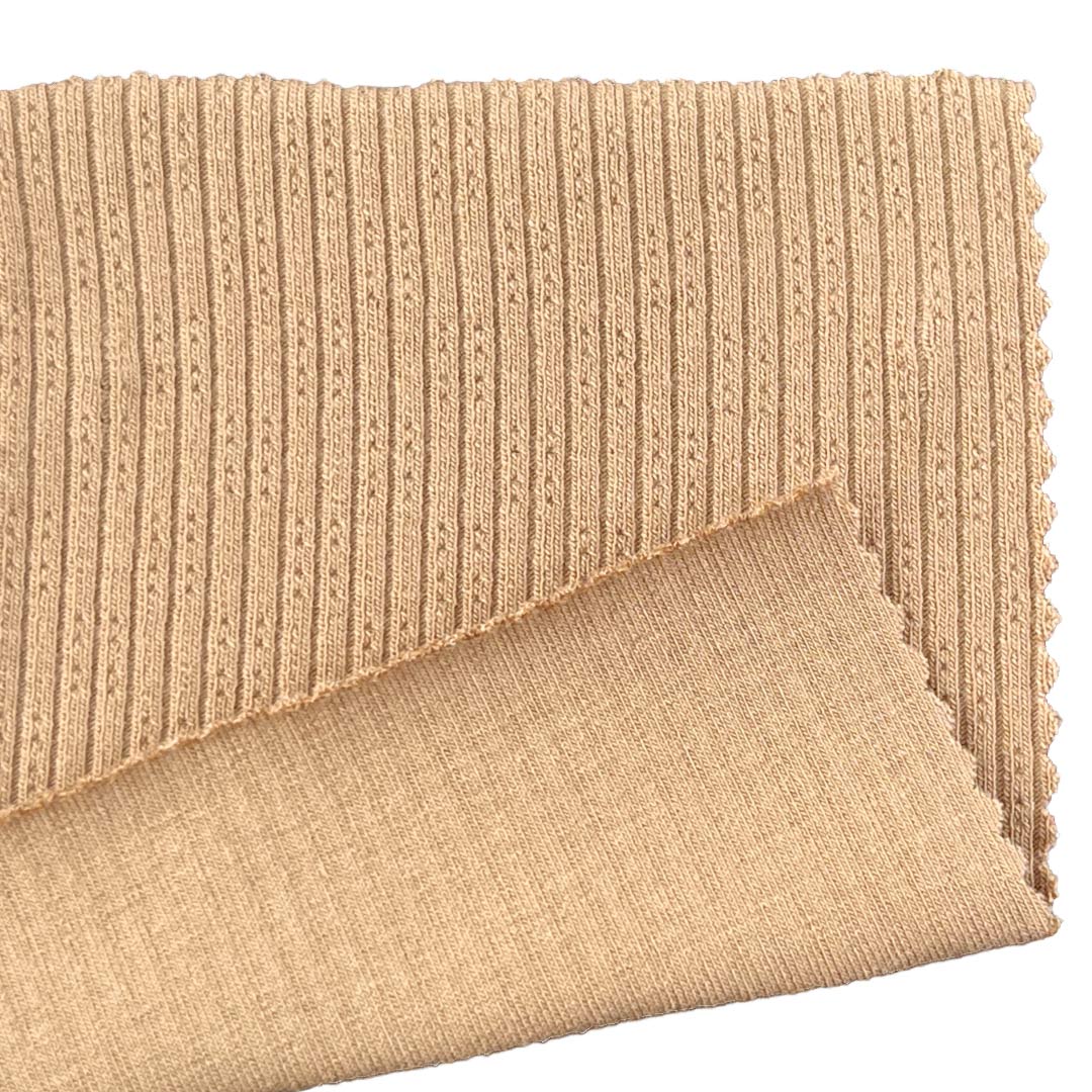 Experience the delicate artistry and exceptional comfort of our 250gsm pointelle fabric, expertly crafted from 46% Cotton, 46% Viscose, and 6% Spandex. This unique fabric features an intricate pointelle knit construction with small, decorative eyelets that create a textured, lace-like appearance while delivering a luxuriously soft hand feel. The blend of cotton and viscose ensures superior breathability, moisture-wicking properties, and a graceful drape, making it ideal for dresses and long sleeve shirts that combine style with everyday comfort. With 6% Spandex woven throughout, the fabric offers gentle stretch and excellent recovery, allowing for ease of movement and a flattering fit.