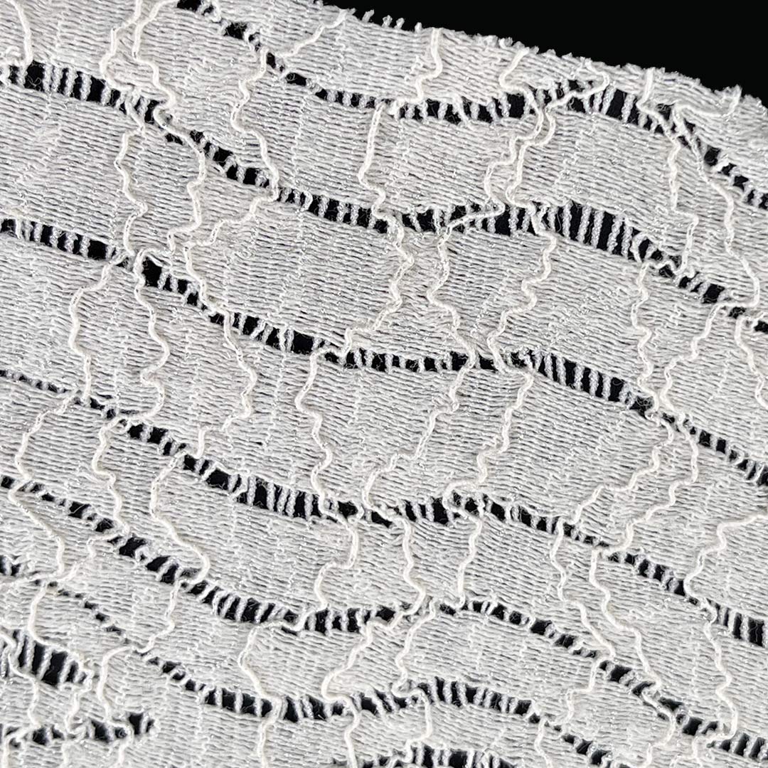 Embrace the perfect fusion of natural softness and structural elegance with our layering lace top fabric, expertly crafted from 27% Polyamide, 58% Cotton, and 15% Spandex. This unique blend fabric features intricate lace patterns woven with precision, creating a delicate and visually enchanting texture while delivering exceptional breathability for extended formal wear. Cotton, as the primary fiber, provides exceptional softness, natural breathability, and moisture-wicking comfort, making the fabric gentle against the skin.