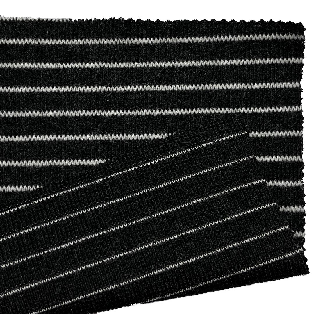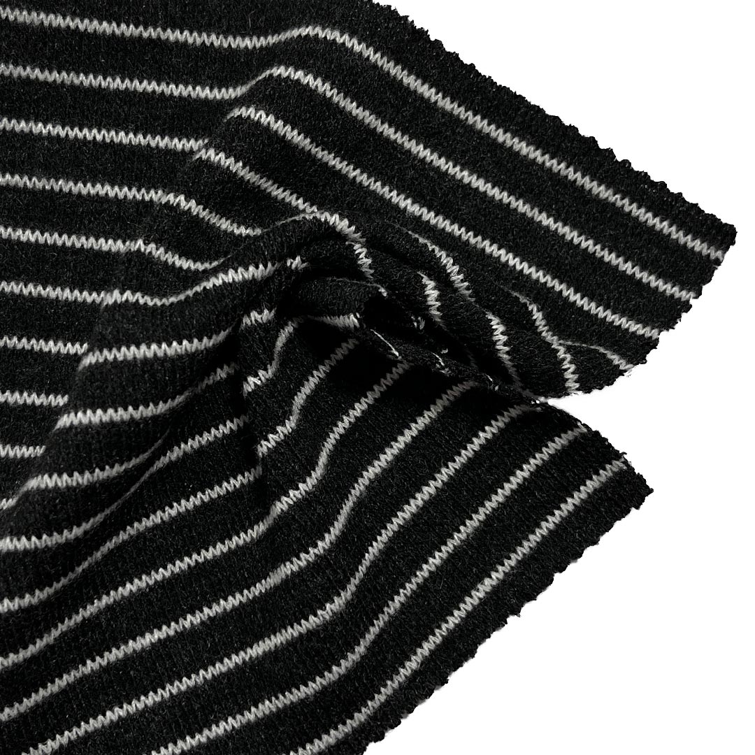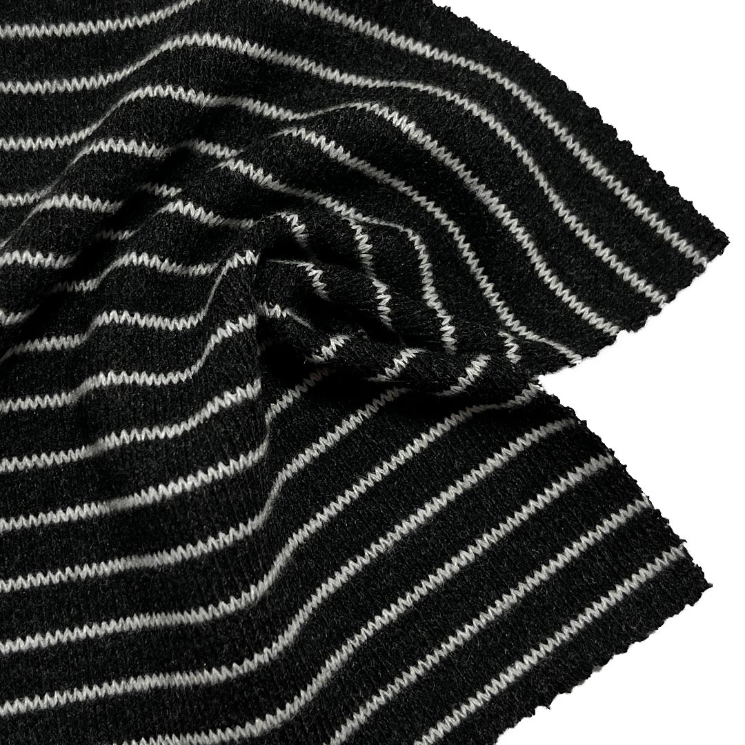 During garment construction, the fabric demonstrates excellent workability, sewing cleanly and maintaining precise stripe alignment throughout production. Ideal for everyday casual wear and relaxed social settings, this adaptable material retains its polished appearance with minimal maintenance. The harmonious combination of pattern, softness, and stretch makes this stripe knit an exceptional choice for fashion-conscious customers seeking comfortable, versatile options for their cardigans, skirts, tops, and dresses.