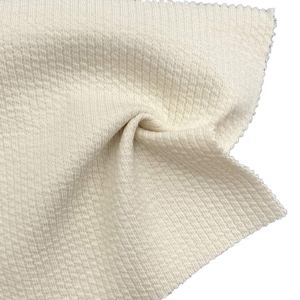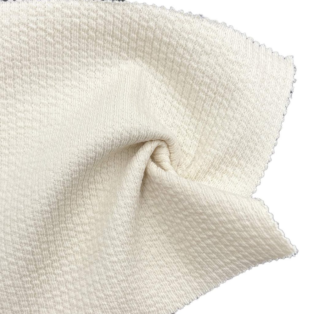 This sophisticated 280gsm (8.3 oz) fabric combines Stripe and Jacquard constructions with a premium blend of 86.8% Cotton, 11.8% Polyester, and 1.4% Spandex, creating a material that offers both visual depth and exceptional tactile qualities. The fabric delivers a soft, smooth hand feel complemented by an appealing textured surface, making it ideally suited for a wide range of garments including elegant dresses, comfortable long sleeve shirts, casual sweatshirts, versatile pants, coordinated suits, performance sportswear, and comfortable shorts. The high cotton content ensures superior breathability and moisture absorption, while the polyester enhances durability and shape retention, and the spandex provides just the right amount of stretch for freedom of movement. The Stripe pattern adds a classic visual element that works particularly well for coordinated suits, long sleeve shirts, and pants, while the Jacquard weaving technique creates intricate textured patterns that elevate the aesthetic of dresses and sweatshirts. This combination of decorative techniques results in a fabric that looks and feels premium, with the 280gsm weight providing substantial body without compromising drape or comfort. The fabric's composition makes it suitable for both casual and more formal applications, from sportswear that requires flexibility to suits that demand structured elegance. Its moisture-wicking properties and breathability ensure comfort throughout the day, whether in active sportswear or everyday dresses and pants. The added spandex allows the fabric to move with the body, making it perfect for garments that require both style and functionality. Designers will appreciate how this versatile fabric can create complete coordinated collections, from dresses and suits to sportswear and shorts, all maintaining consistent quality and aesthetic appeal. The fabric maintains its soft hand feel and textured appearance after repeated laundering, ensuring long-lasting performance and customer satisfaction across all garment types.