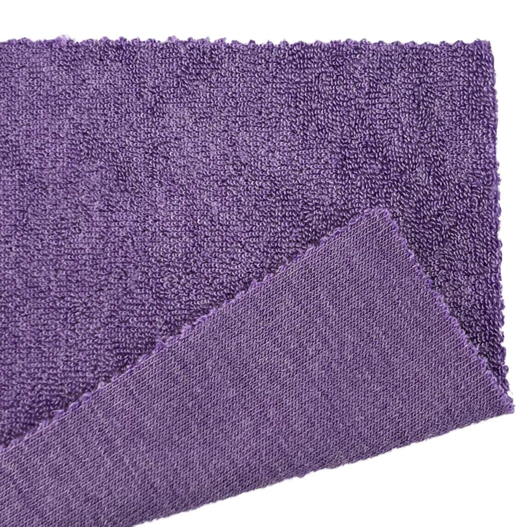 Weighing 280gsm, this medium-weight fabric offers substantial warmth and a cozy, plush drape, making it perfect for sleepwear designed for restful nights and hoodies that prioritize comfort and casual style. Its looped texture feels gentle against the skin and lends a warm, inviting aesthetic to loungewear and relaxed casual wear. The towel-like surface promotes air circulation and quick-drying capabilities, ensuring comfort during extended wear. Easy to care for and machine washable, this fabric retains its soft pile, vibrant colors, and cozy character over time.