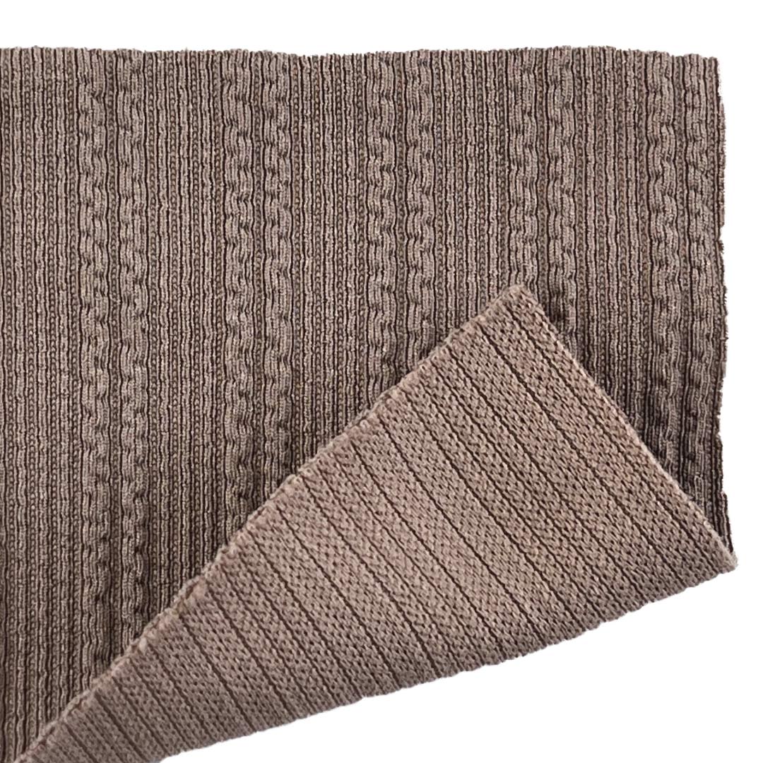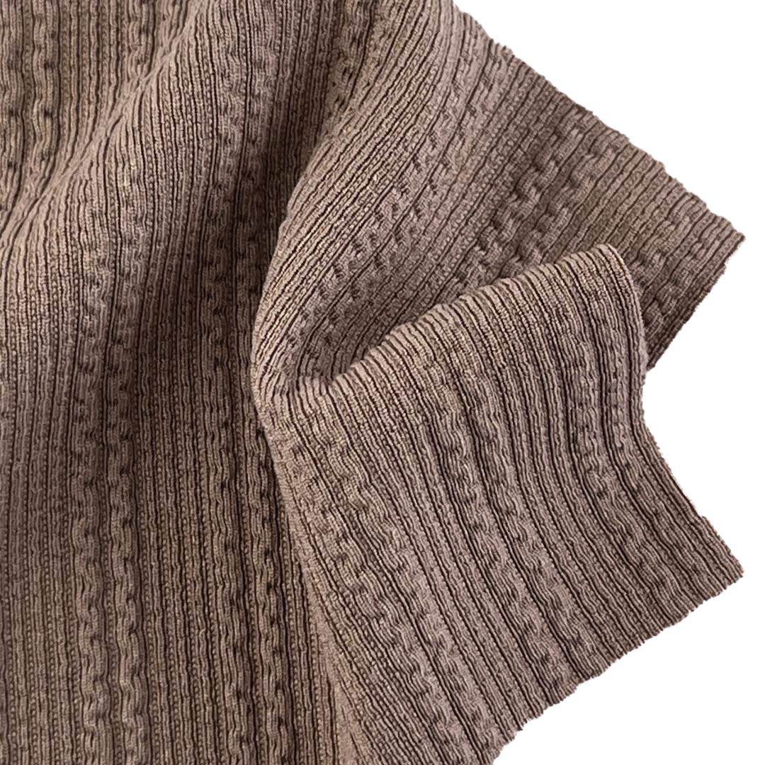 Whether designing cozy cardigans for layered looks or elegant dresses for special occasions, this Cable Jacquard Fabric empowers you to create garments that seamlessly blend artisanal craftsmanship with everyday wearability.