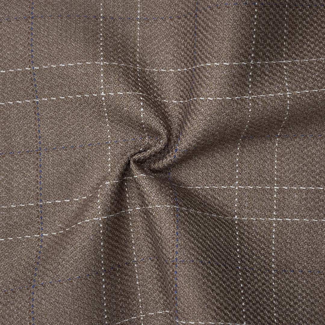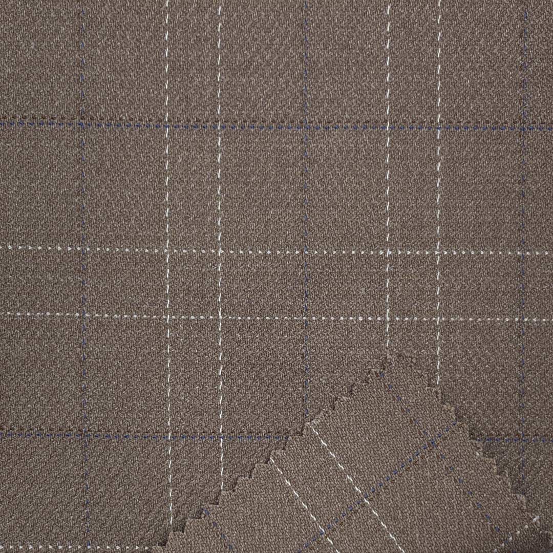 Weighing 292g/m (5.7oz), this premium suiting fabric combines 70% polyester, 28% viscose, and 3% spandex to create a distinguished material with crisp hand feel and refined texture. Designed for sophisticated suits and blazers, this balanced blend delivers structured elegance through its crisp tactile qualities while offering visual depth. Polyester ensures reliable durability and shape retention, maintaining sharp professional silhouettes through extended wear. Viscose contributes softness and breathability, enhancing comfort while preserving the fabric's crisp characteristics.