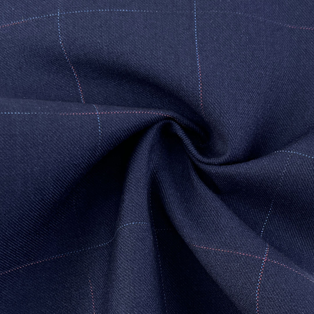Polyester provides reliable durability and shape retention, maintaining clean, precise silhouettes through extended professional wear. Viscose contributes outstanding softness and breathability, enhancing the fabric's smooth tactile quality. The medium weight and fine construction work in harmony to provide a polished fall and excellent tailoring performance, making this material particularly suitable for creating suit fabric that balances refined aesthetics with practical ease.