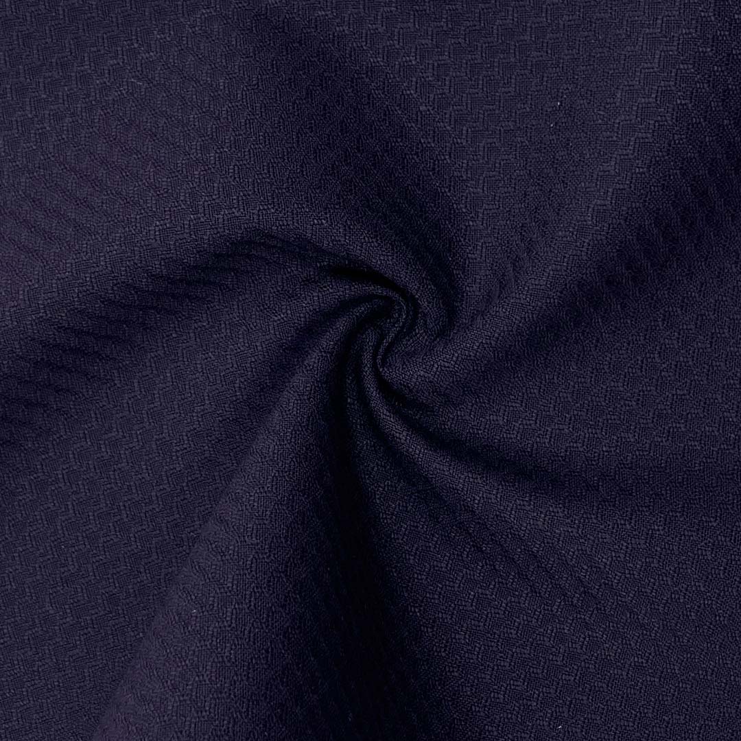 Viscose contributes subtle softness and breathability, enhancing comfort while complementing the fabric's textural characteristics. The generous spandex inclusion offers enhanced flexibility and stretch recovery, allowing for natural movement while preserving the material's tailored structure. The crisp hand feel provides a premium tactile experience that distinguishes this material from conventional suiting fabrics, while the textured surface adds dimensional depth and visual sophistication.
