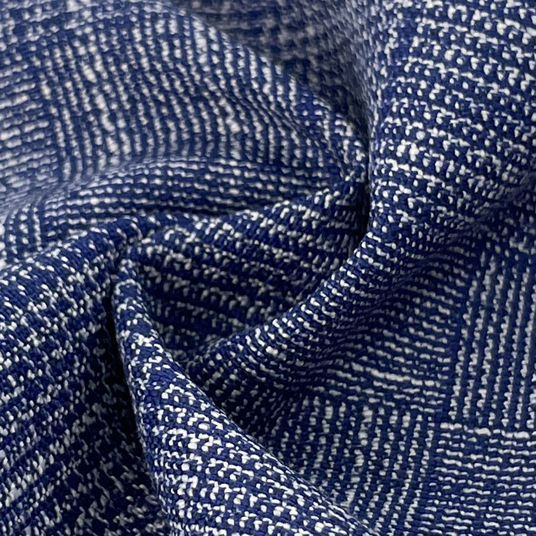 Viscose contributes softness and breathability, enhancing comfort while preserving the fabric's crisp texture. The strategic spandex inclusion offers optimal flexibility for natural movement while supporting the fabric's structured appearance. The intricate plaid pattern adds visual depth and traditional sophistication, making this fabric particularly suitable for creating blazers that command attention in professional settings. The crisp hand feel delivers a premium tactile experience, distinguishing this material from conventional suiting fabrics and ensuring garments project confidence and refinement.