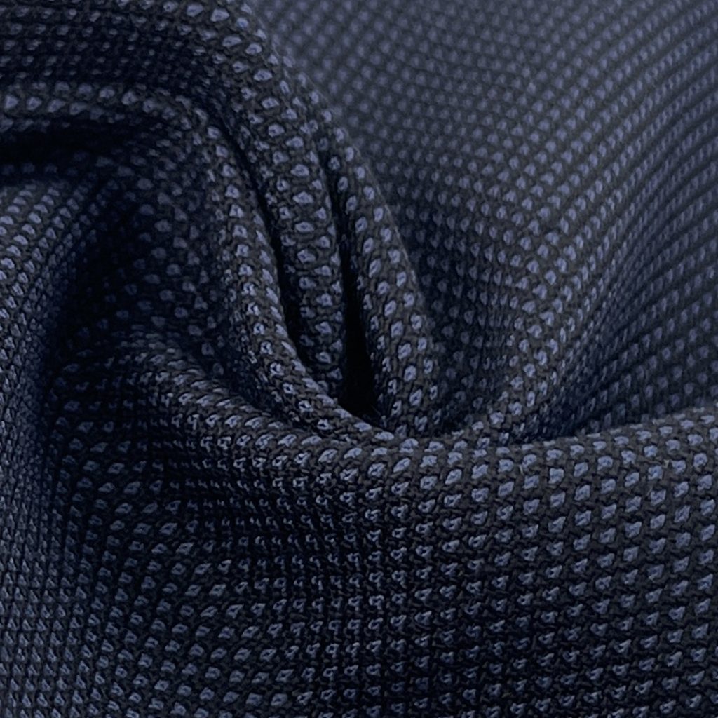 Weighing 300g/m (5.9oz), this refined fabric combines 80% polyester, 20% viscose, and 2% spandex to create an exceptional suiting material with distinctive bird eyes pattern and definitive crisp hand feel. Designed specifically for suits and blazers, this sophisticated blend offers contemporary elegance through its unique texture while delivering superior comfort through its balanced fiber composition. Polyester provides outstanding durability and reliable shape retention, ensuring garments maintain their sharp professional silhouette through extended wear.