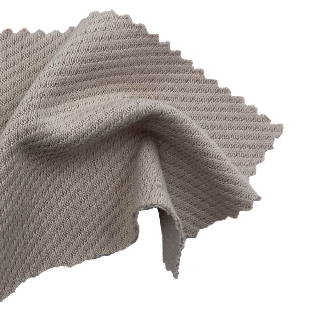 This 300gsm durable jacquard fabric combines 58% combed cotton with 42% polyester to deliver a balance of comfort and long-lasting wear. The combed cotton enhances breathability and provides a soft, skin-friendly texture, while polyester adds strength, wrinkle resistance, and durability, ensuring garments maintain their shape through everyday use. Its medium-heavy weight makes it an excellent choice for hoodies, sweatshirts, and casual tops that need to withstand regular wear while keeping a cozy feel. The jacquard weave introduces refined patterns and a stylish look, giving each finished piece extra depth and character. Ideal for those seeking practical yet fashionable apparel, this fabric is both resilient and comfortable.