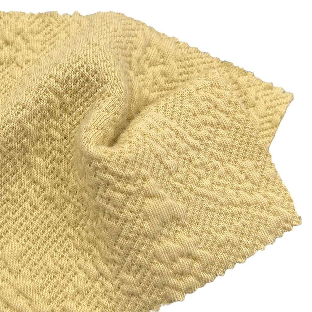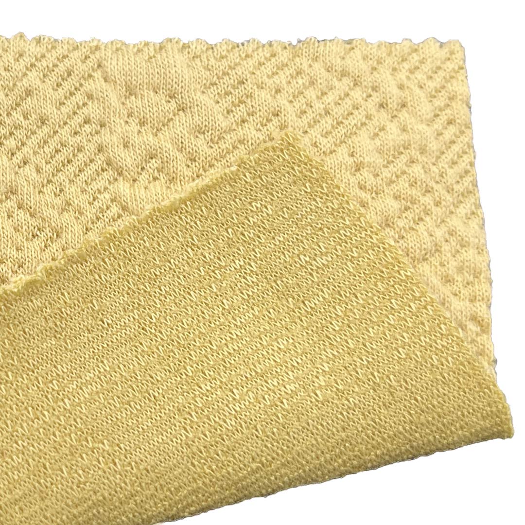 This 300gsm Jacquard Fabric combines 25% Tencel, 25% Cotton, 45% Polyester, and 5% Spandex to create a technical material perfect for sweatshirts and zip-up hoodies. The jacquard weaving technique produces intricate raised patterns that create dimensional texture and visual depth, while the balanced fiber composition ensures both comfort and performance. Tencel provides excellent moisture-wicking properties and breathability, while cotton adds natural softness against the skin.