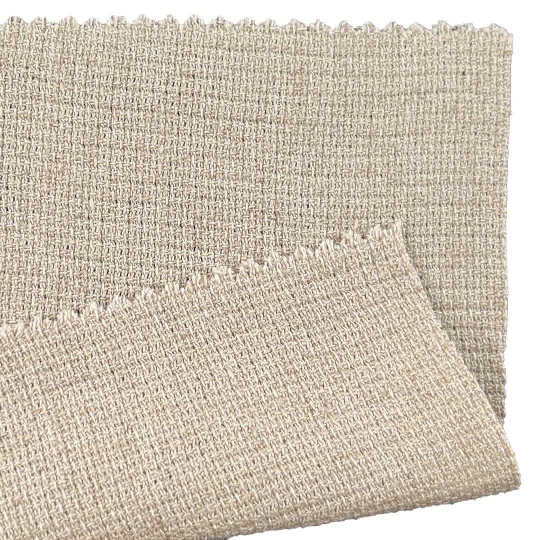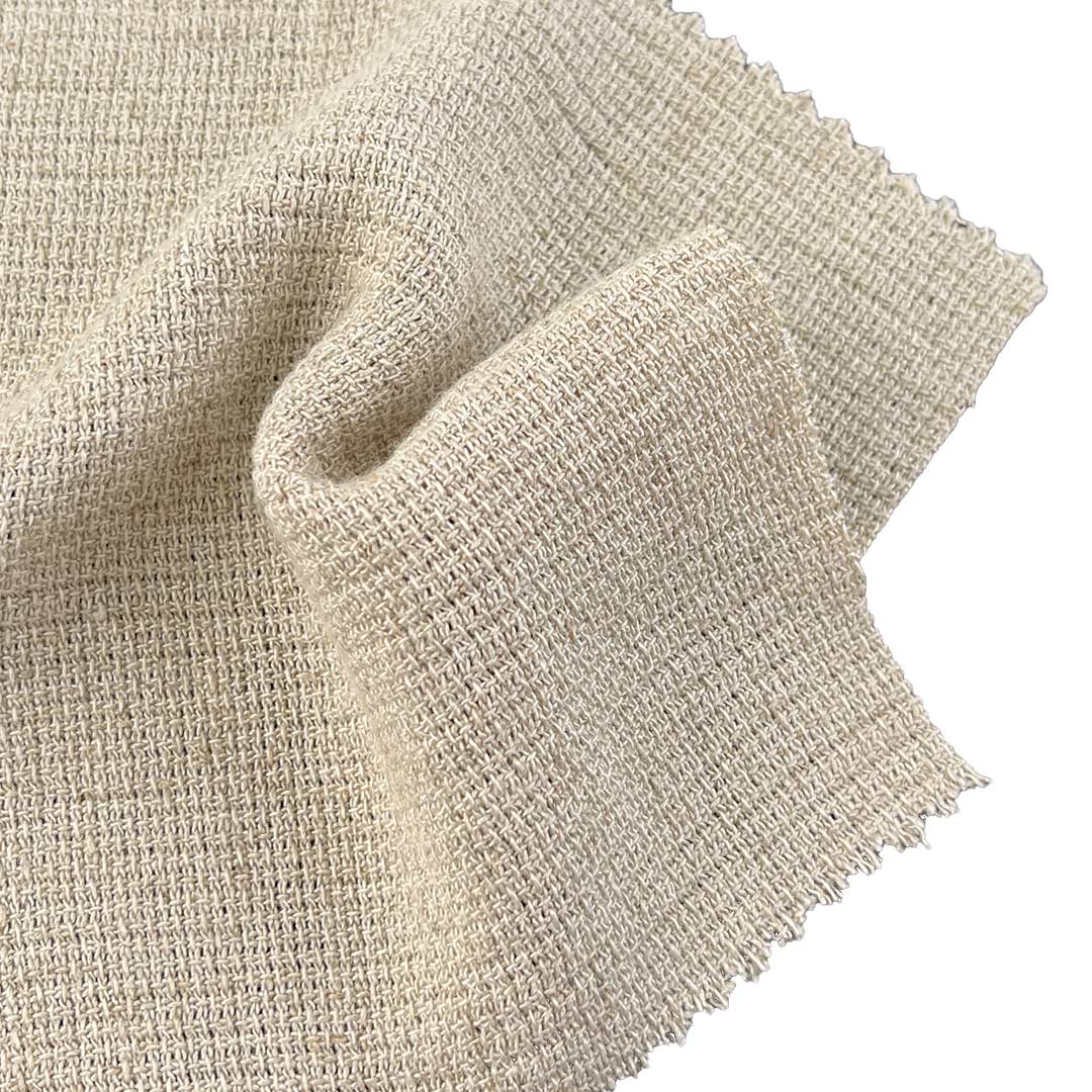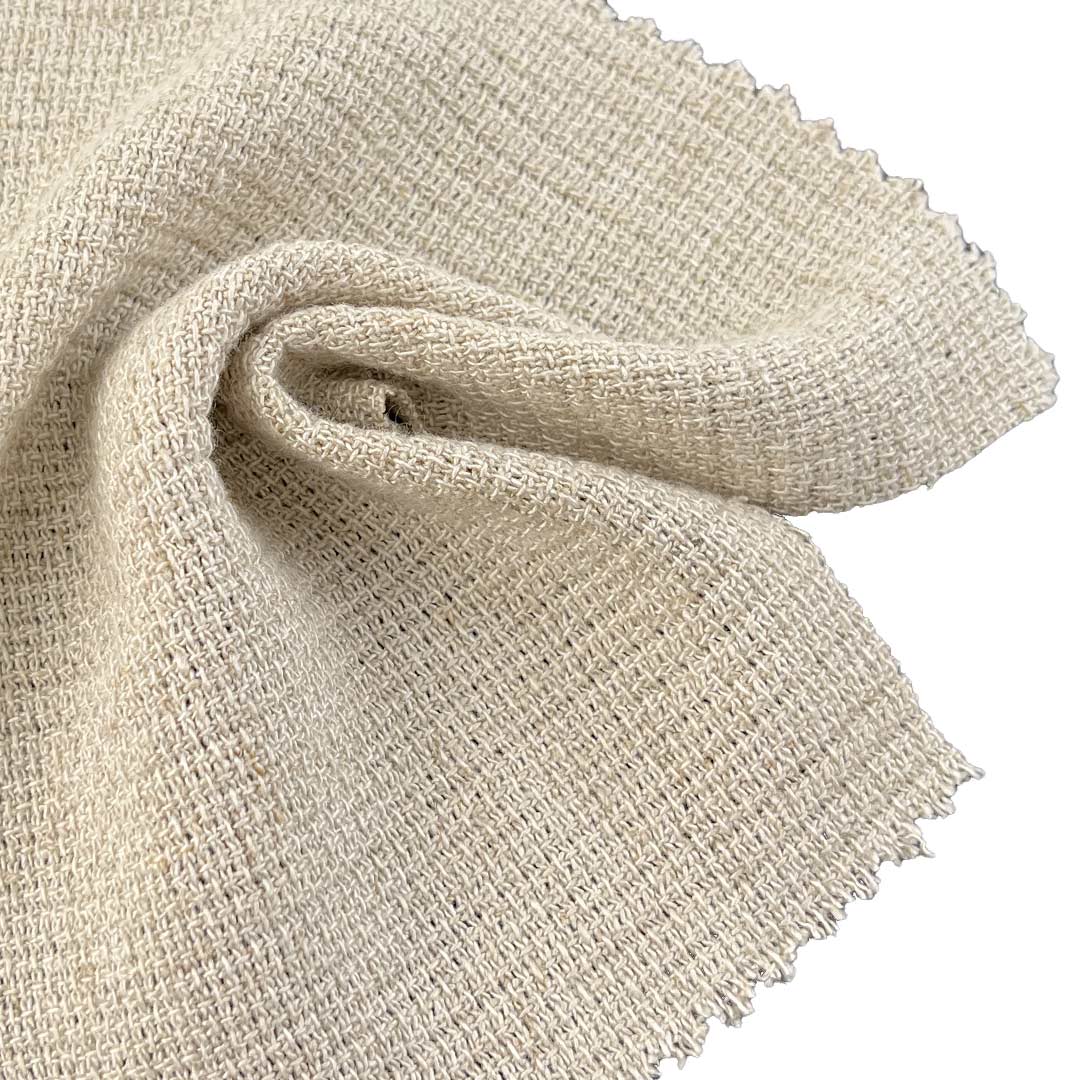 Discover the sophisticated blend of rustic texture and elegant drape in this burlap material crafted from a balanced blend of 30% Linen and 70% Viscose. Weighing 300gsm, this fabric combines the structured, breathable character of linen with the smooth, fluid grace of viscose, resulting in a material with a distinct textured appeal. Ideal for refined suit linings and sturdy bags, it offers a unique fusion of rustic charm and modern functionality.