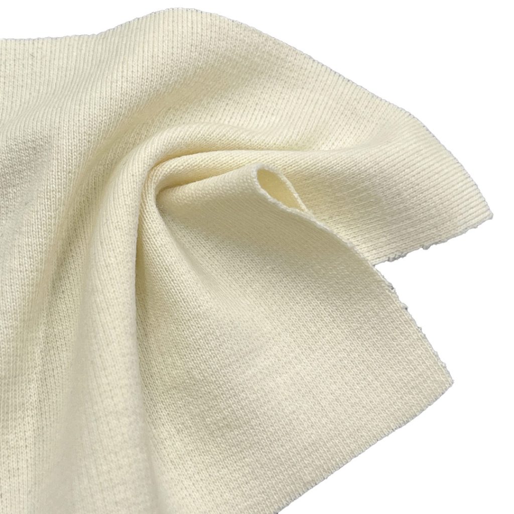 Cotton delivers natural breathability and softness, while polyester enhances durability and shape retention. The 3% Spandex offers comfortable stretch and reliable recovery for ease of movement. Weighing 300gsm, this substantial fabric provides optimal warmth and coverage for cooler weather. The crisp texture supports tailored designs with clean lines, while the double knit structure ensures long-lasting performance.