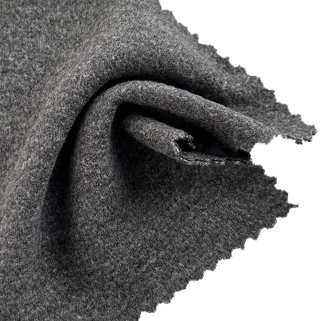Our 300gsm Bonded Boiled Wool Fabric features an advanced two-layer construction with carefully balanced fiber compositions, making it a versatile and performance-oriented choice for jackets, pants, coats, and sweaters. The front side combines 37.4% Polyester, 33.1% Viscose, 13.9% Acrylic, 9% Tencel, 3.3% Wool, and 3.3% Spandex, delivering a luxuriously soft hand feel, durability and shape retention from polyester, breathability and drape from viscose, lightweight warmth from acrylic, moisture-wicking smoothness from Tencel, natural insulation from wool, and comfortable stretch from spandex.