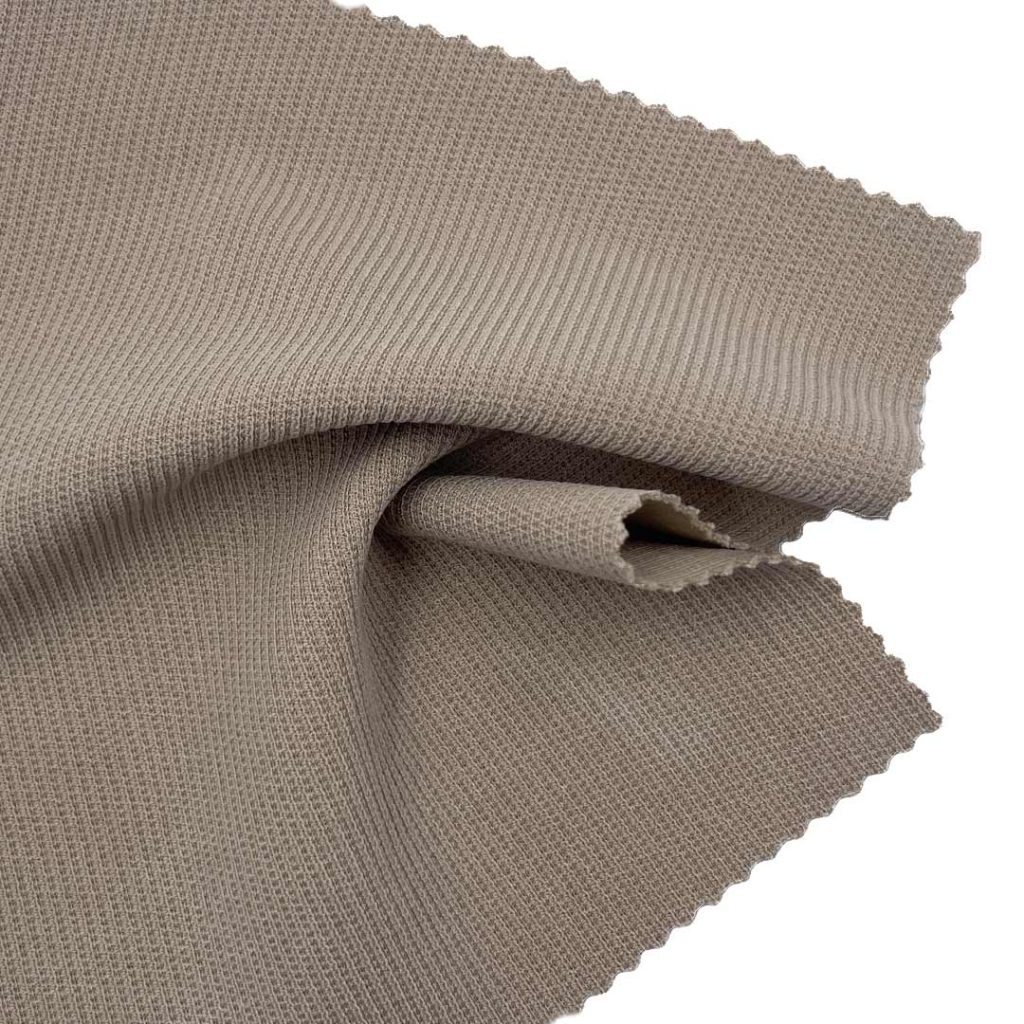 This 300gsm (10.6 oz) fabric combines 60.3% Polyester, 35.6% Modal, and 4.1% Spandex in both Double Knit and Rib constructions, creating a versatile material ideal for shorts and dresses. The Double Knit structure provides a stable, smooth surface with excellent recovery, while the Rib construction adds textured elasticity for comfortable fit and movement. Polyester contributes durability and shape retention, ensuring garments maintain their form through extended wear. Modal, derived from beech tree pulp, offers exceptional softness and breathability, making the fabric gentle against the skin. The 4.1% Spandex provides just the right amount of stretch and recovery, allowing for freedom of movement without losing shape. The 300gsm weight gives the fabric a substantial feel that drapes beautifully in dresses and provides structure in shorts. This medium-heavy weight makes it suitable for year-round wear, offering coverage without bulk. The fabric's moisture-wicking properties help keep the wearer dry and comfortable, while its breathability ensures optimal air circulation. Easy to care for and resistant to pilling, this fabric maintains its quality and appearance after repeated washing. The Double Knit side offers a clean, polished look perfect for dressier styles, while the Rib sections provide visual interest and functional stretch. Perfect for creating comfortable shorts that move with you and elegant dresses that maintain their silhouette. The blend of synthetic and natural fibers creates a fabric that combines the best of both worlds - durability from polyester, softness from modal, and flexibility from spandex. Whether for casual shorts, stylish dresses, or versatile separates, this fabric delivers outstanding performance and comfort for the modern wardrobe.