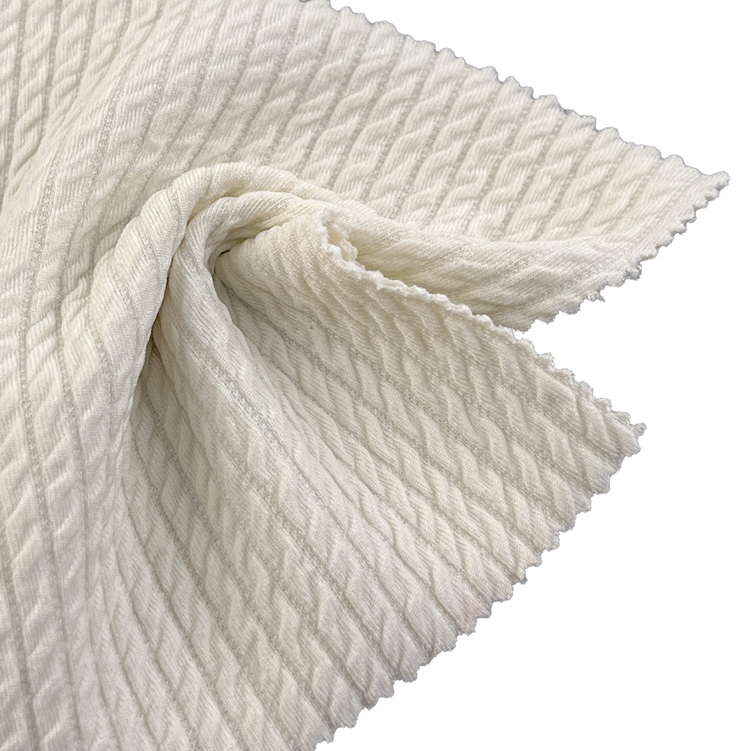 Engineered for urban fashion and durable performance, our 305gsm Jacquard Fabric combines 95% Polyester and 5% Spandex to create a textured heavyweight material ideal for zip-up hoodies and pants. This technical fabric features intricate jacquard woven patterns that produce a dimensional textured surface while ensuring consistent stretch and recovery. The high polyester content delivers exceptional durability with a pill-resistant grade of 4, colorfastness rating of 4/5, and superior shape retention. With 5% Spandex integrated, the fabric provides 25% four-way stretch and 92% recovery rate, enabling comfortable movement and a lasting fit.
