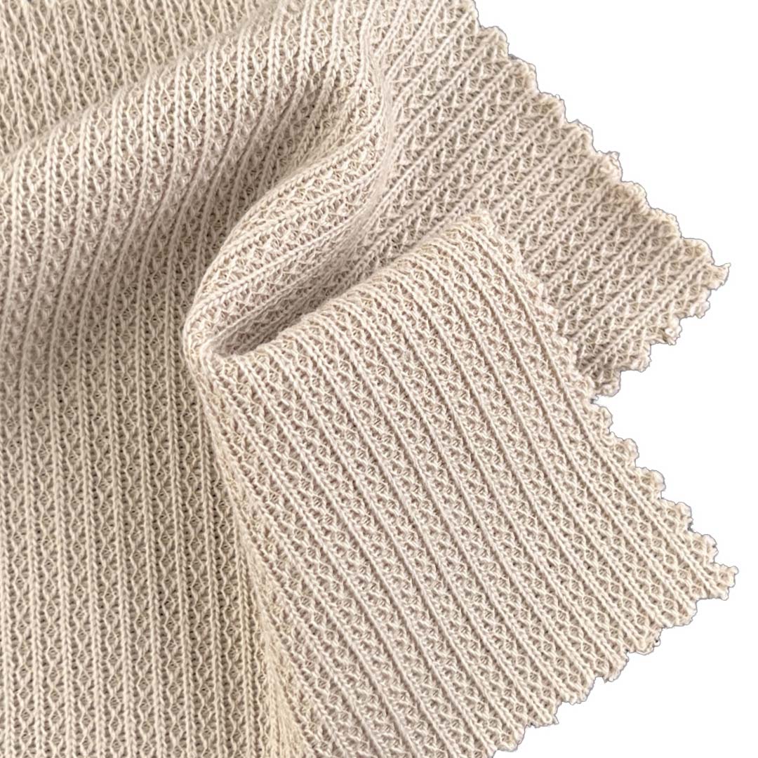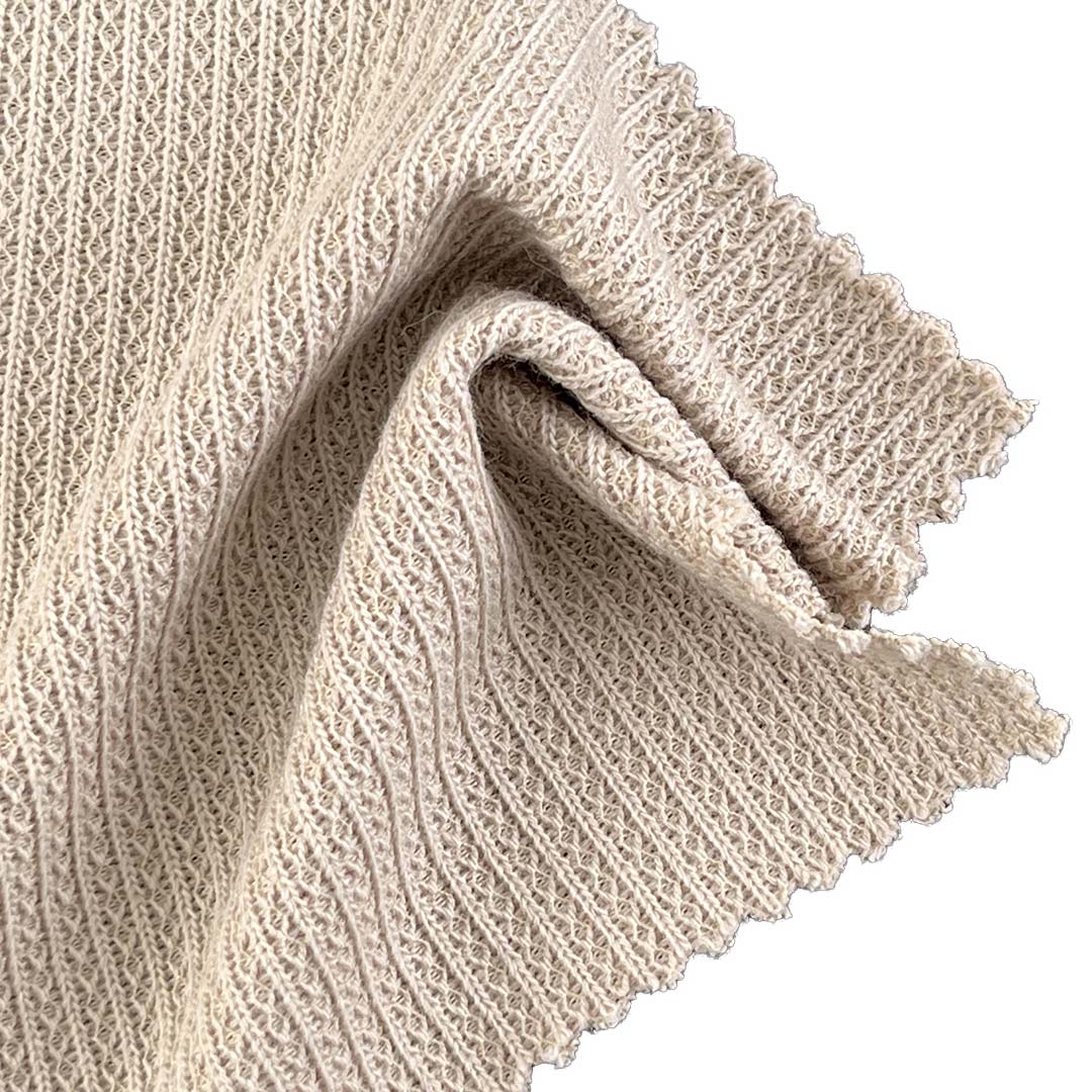 Designed for dimensional texture and natural comfort, this 310gsm cotton-blend cable jacquard knit combines 83% Polyester and 17% Cotton to create a fabric that features intricate jacquard patterns enriched by classic cable knitting, resulting in a soft hand feel ideal for dresses, cardigans, shawls, and sweaters. Polyester ensures durability, colorfastness, wrinkle resistance, and easy care, while Cotton adds breathability, natural softness, and moisture-wicking comfort.
