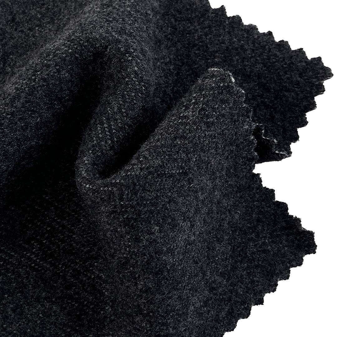Our 310gsm Bonded Boiled Wool Fabric features a sophisticated two-layer construction designed for both performance and comfort, making it an excellent choice for structured jackets and versatile pants. The front side is crafted from a blend of 5% Wool, 34% Viscose, 56% Polyester, and 5% Acetate, offering a luxuriously soft hand feel, natural warmth from wool, breathability and fluid drape from viscose, durability and shape retention from polyester, and a smooth, lustrous finish from acetate.