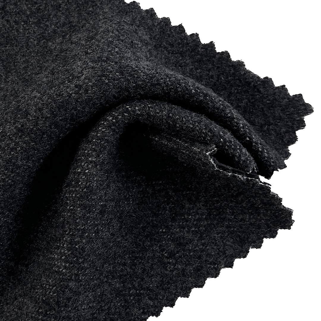 The back side consists of 20% Polyester and 80% Viscose, providing a smooth, moisture-wicking interior that enhances comfort against the skin. This Bonded Boiled Wool Fabric integrates bonding technology with the traditional boiled wool process on the front layer, resulting in a fabric that combines structural integrity with flexible movement. Weighing 310gsm, this Medium-Heavyweight Boiled Wool Fabric delivers substantial warmth and breathability, ideal for cool to cold weather apparel. The bonded structure adds stability and wind resistance, while the two-layer design allows for versatile styling—front for refined aesthetics, back for wearable comfort.