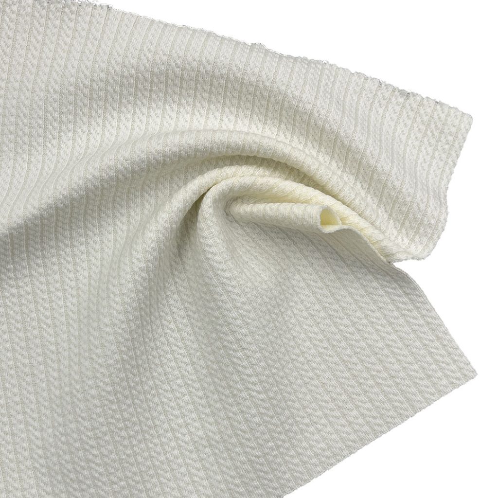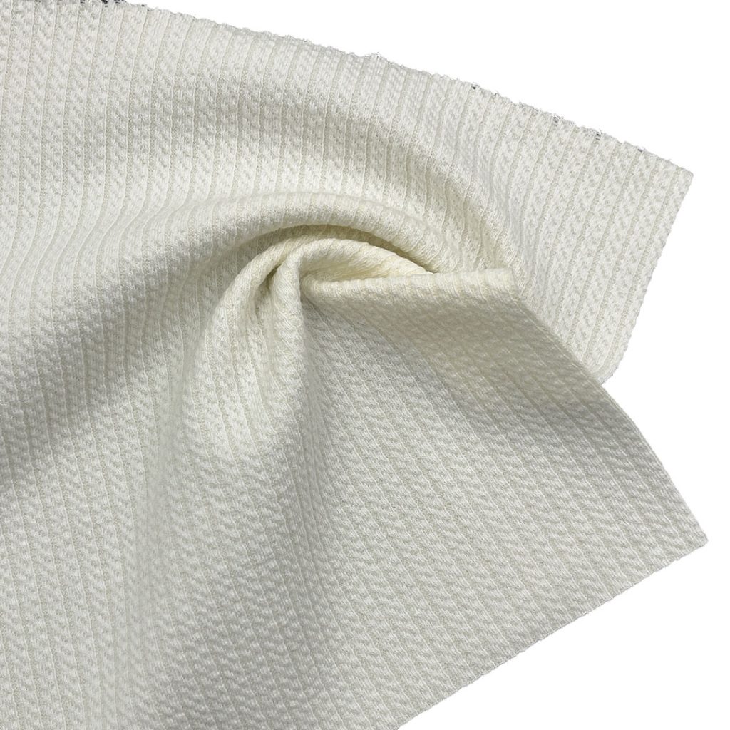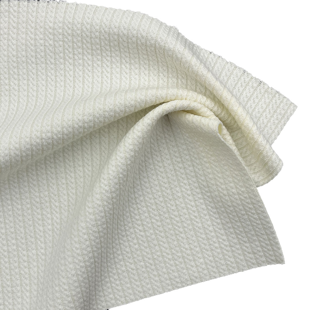 This 310gsm Polyester Cotton Spandex Stripe Twisted Knit Fabric combines 52.1%polyester, 45.4% cotton, and 2.5% spandex to achieve a premium balance ofstretch, structure, and softness. The twisted knit construction enhances elasticityand surface texture, while the stripe design adds dynamic visual appeal perfect fortrendy streetwear and casual collections. Polyester provides strength and durabilitycotton ensures softness and breathability, and spandex contributes flexible comfortand shape recovery, With a substantial 310gsm weight, this fabric offers warmthand body without feeling bulky, making it ideal for hoodies, sweatshirts, andshorts. The textured knit surface delivers a unique tactile character that stands outin modern fashion while maintaining comfort and performance. lt drapes smoothlyand retains shape after multiple washes, ensuring long-term reliability. Designersappreciate its refined stripe pattern and structured hand feel, suitable for layered orstatement pieces, Whether used for premium hoodies, cozy sweat sets, orcontemporary streetwear, this polyester cotton spandex stripe twisted knit fabricprovides comfort, durability, and stylish versatility.