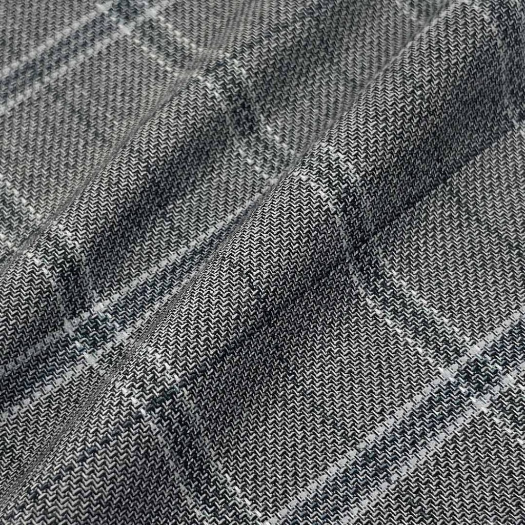 Weighing 315g/m (6.2oz), this distinctive fabric combines 59% polyester, 39% viscose, and 2% spandex to create a unique suiting material with pronounced coarse texture and dimensional character. Designed specifically for fashion-forward suits and blazers, this innovative blend delivers visual interest through its textured surface while ensuring comfortable wear through its balanced fiber composition. Polyester provides reliable durability and shape retention, maintaining garments' structural integrity through extended wear.