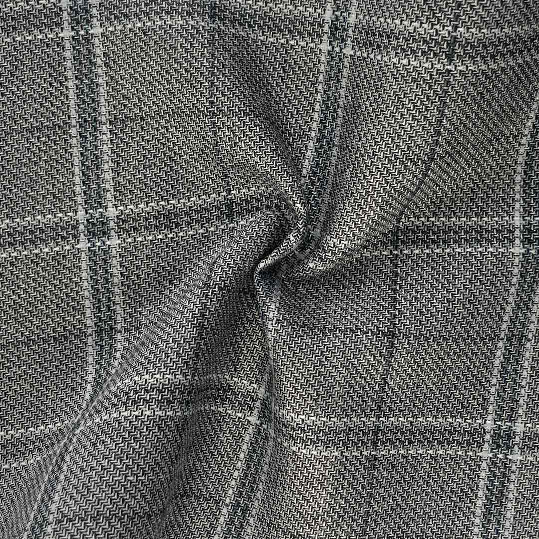 The significant viscose content contributes exceptional softness and breathability, creating a comfortable wearing experience that contrasts beautifully with the fabric's coarse exterior. The strategic spandex inclusion offers gentle flexibility for natural movement while supporting the fabric's textural integrity. The bold coarse texture adds visual depth and tactile interest, making this fabric particularly suitable for creating blazers that make a strong style statement in professional settings. This striking combination of coarse texture and underlying comfort distinguishes the material from conventional suiting fabrics, providing both visual impact and wearing ease. During tailoring, the fabric demonstrates good workability, handling cleanly while preserving its distinctive textural characteristics. Ideal for creative business environments and fashion-conscious professionals, this unique fabric maintains its characterful appearance through regular wear.