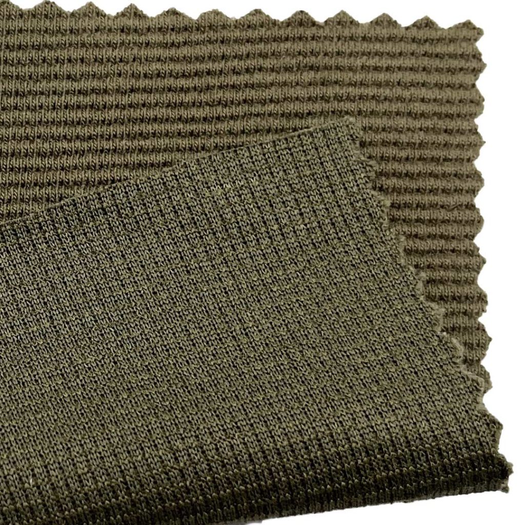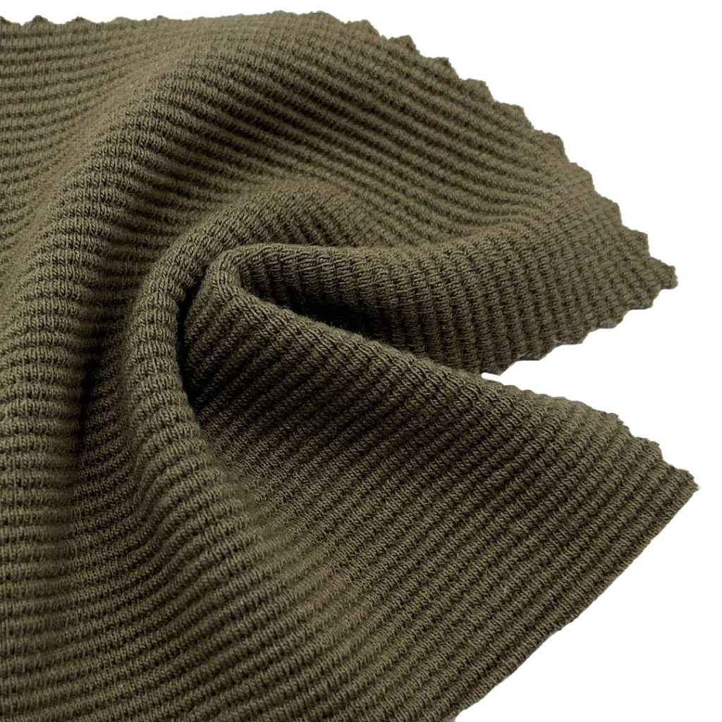 This fabric features a distinctive ottoman weave with pronounced horizontal ribs that create a rich textured surface and soft hand feel, providing both visual depth and tactile comfort. The cotton content ensures breathability and natural softness, while the high polyester percentage delivers exceptional durability, shape retention, and resistance to wrinkles and fading. With 4% Spandex woven throughout, the fabric offers optimal stretch and recovery, allowing for freedom of movement while maintaining its structured silhouette. Weighing 320gsm, this heavyweight fabric provides substantial warmth and a premium drape that lends itself perfectly to tailored hoodies, structured jackets, and fashion-forward zip-up styles. The textured surface not only enhances the fabric's aesthetic appeal but also adds dimension to garments, making them stand out in urban fashion collections.