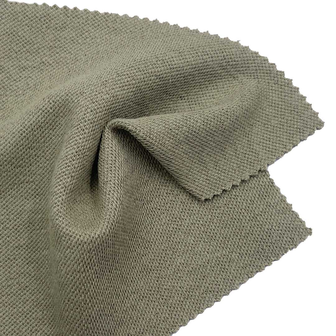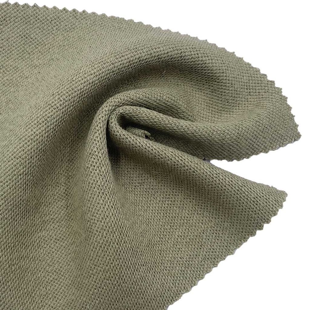 The high cotton content ensures superior breathability and moisture management, while the polyester enhances strength, wrinkle resistance, and long-lasting color retention. Weighing 320gsm, this medium-heavyweight fabric provides substantial warmth and coverage without compromising flexibility, making it ideal for sweatshirts, pants, shorts, and other sportswear. The pique surface adds visual interest and improves airflow, while the double knit base offers resilience and ease of movement.