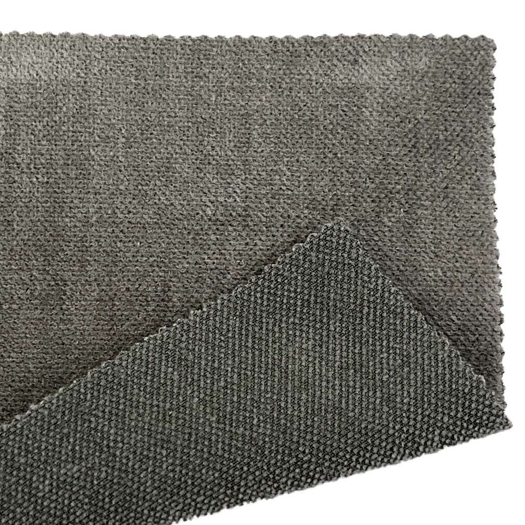 Polyester provides vibrant color retention, durability, and shape stability, while the 3% Spandex ensures subtle elasticity and recovery for ease of movement. The addition of 3% Wool introduces natural insulation, moisture-wicking properties, and a touch of rustic texture, elevating the fabric's tactile and thermal performance. Cozy luxury redefines everyday elegance. Weighing 320gsm, this substantial fabric drapes with elegant weight and provides a structured yet soft silhouette, perfect for skirts and dresses that combine sophistication with comfort, as well as loungewear designed for ultimate relaxation. Its plush surface catches light beautifully, creating a subtle luster and a deeply inviting tactile experience.