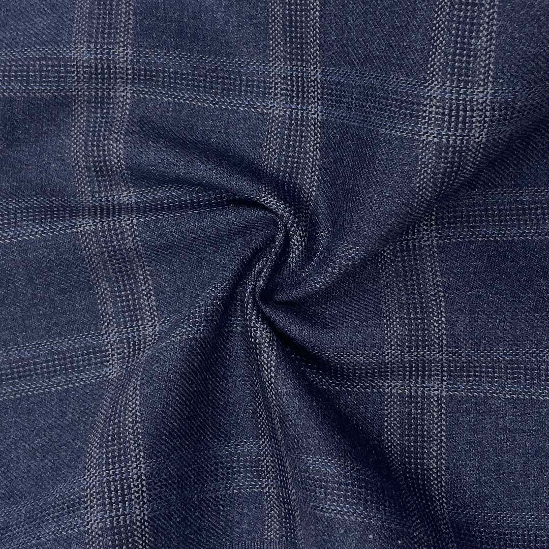 Weighing 340g/m (6.7oz), this premium fabric combines 71% polyester, 26% viscose, and 3% spandex to create an exceptional suiting material with remarkably soft hand feel and refined texture. Designed for sophisticated suits and blazers, this balanced blend delivers luxurious comfort through its plush tactile qualities while offering visual interest via its textured surface.