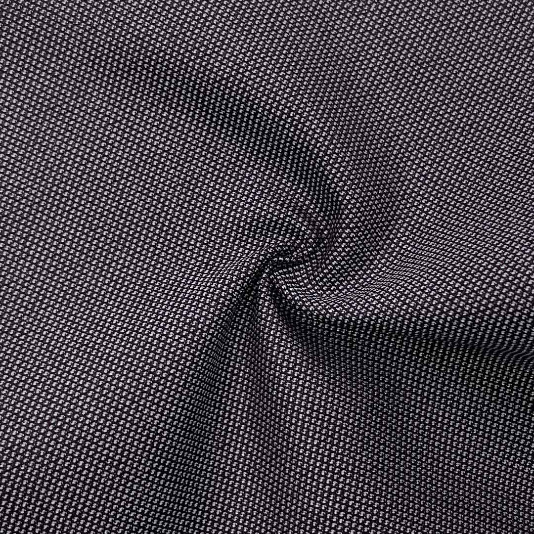 The high polyester content ensures exceptional durability, reliable shape retention, and a clean, architectural drape that upholds a polished silhouette. The viscose introduces subtle softness and breathability, enhancing comfort while maintaining the fabric’s crisp character. The strategic spandex addition provides just enough flexibility for ease of movement, ensuring the structured fabric remains comfortable throughout the day. The distinct texture adds visual depth, tactile interest, and a modern edge, elevating the fabric's aesthetic beyond conventional suiting materials. This crisp, textured hand feel conveys professionalism and attention to detail, making it an ideal choice for power dressing.