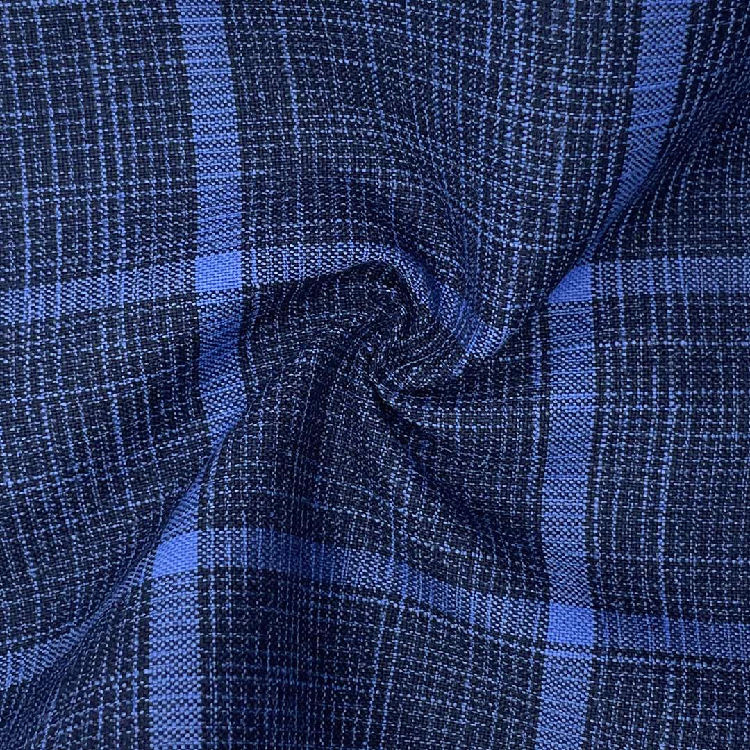 Viscose contributes subtle softness and breathability, enhancing comfort while complementing the fabric's crisp characteristics. The minimal spandex inclusion offers gentle flexibility for natural movement while preserving the material's tailored structure. The crisp hand feel provides a premium tactile experience that distinguishes this fabric from conventional suiting materials, while the fine texture adds visual sophistication and tactile refinement.