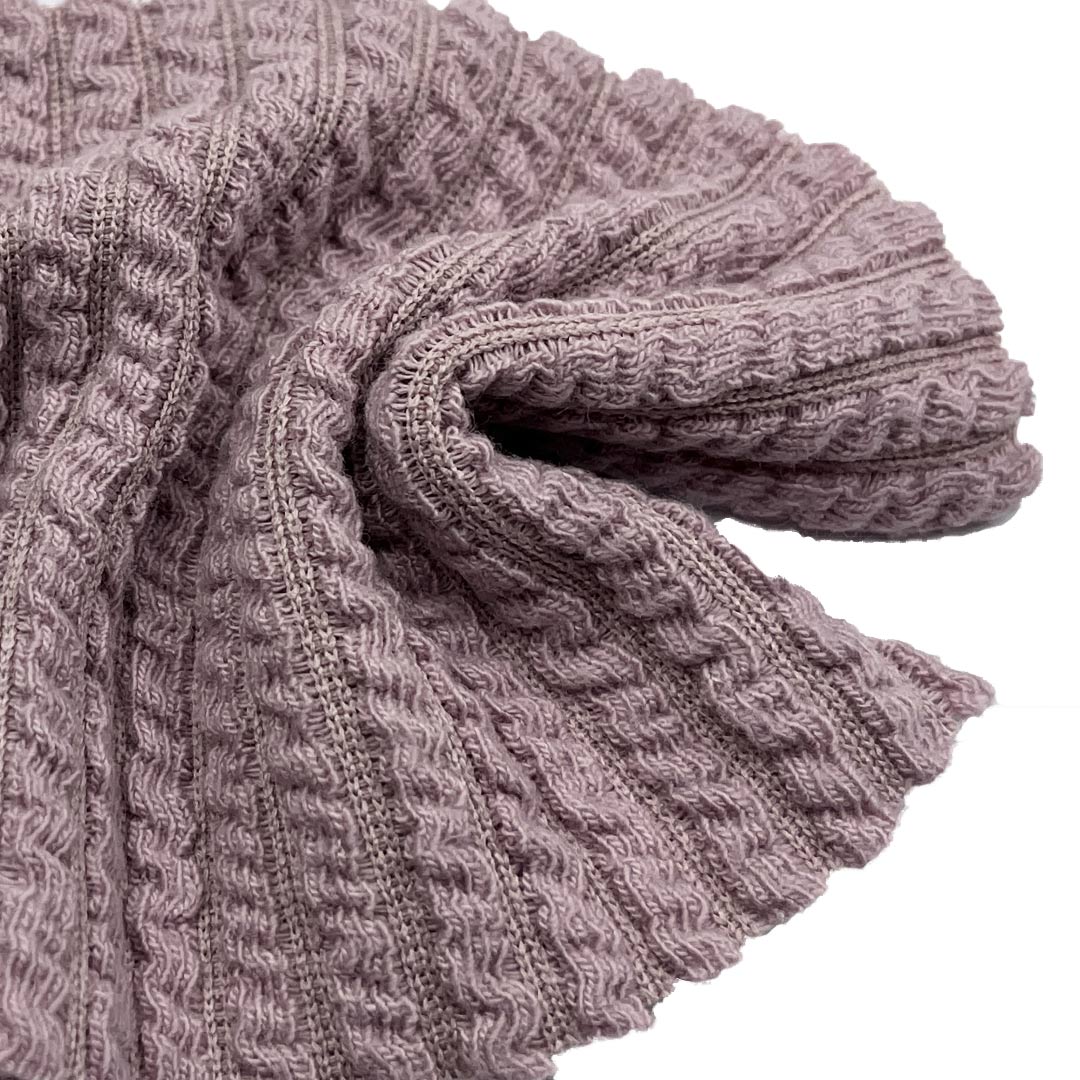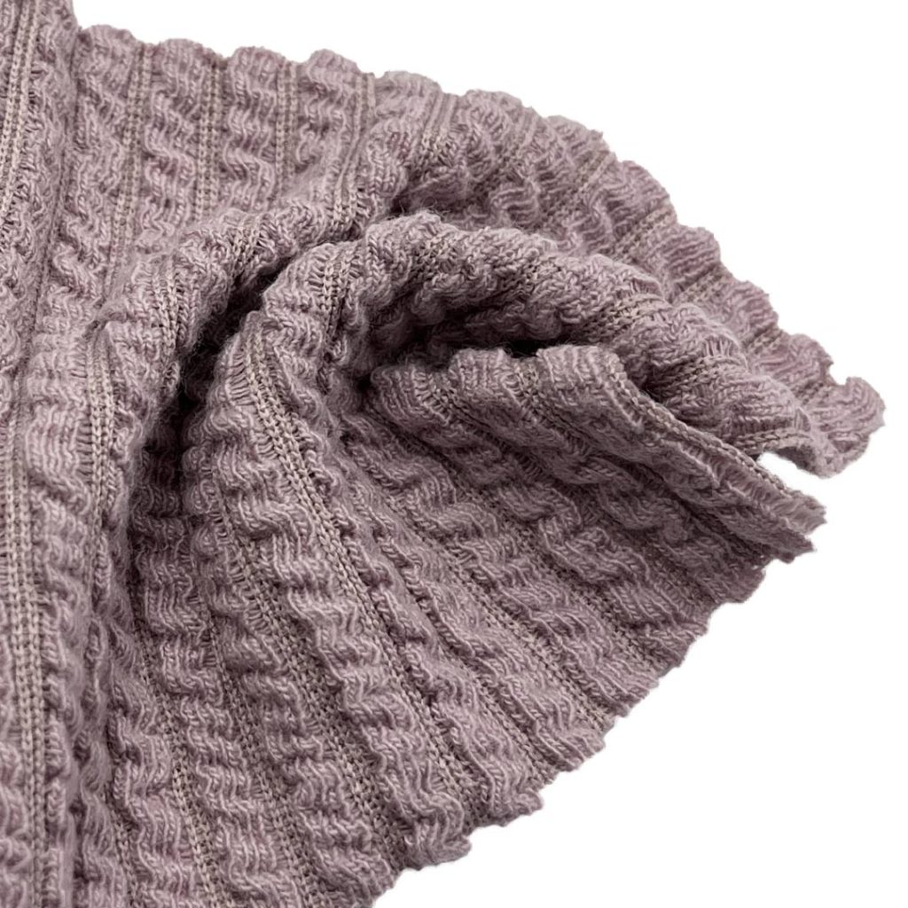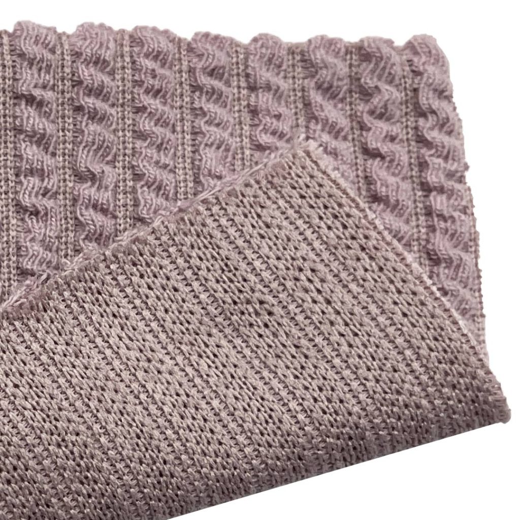 Cotton provides breathability and softness, while polyester ensures exceptional strength, shape retention, and resistance to wrinkles and abrasion. The 2% Spandex offers subtle stretch for ease of movement without compromising the fabric's structured drape. Weighing 340gsm, this robust fabric delivers substantial warmth and coverage, making it ideal for dresses, jackets, and zip up hoodies designed for colder seasons. The jacquard patterns introduce artistic detail, the ribbed sections enhance elasticity, and the double knit base guarantees durability and a polished finish.