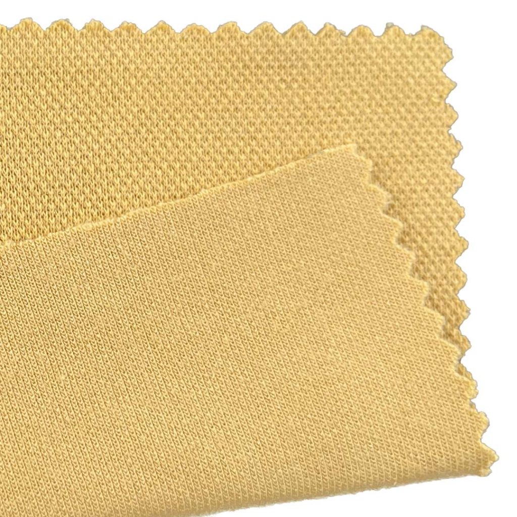 Engineered for premium performance and distinctive style, our 340gsm Double Knit Pique Fabric combines 55% Cotton, 40% Polyester, and 5% Spandex to create a heavyweight material that excels in both texture and structure. This advanced fabric integrates the dimensional stability of double knit construction with the geometric raised patterns of pique, delivering a richly textured surface and a crisp hand feel that ensures superior shape retention. The cotton content provides natural softness and breathability, while the polyester enhances durability, colorfastness, and resistance to wrinkles and pilling. With 5% Spandex woven throughout, the fabric offers optimal stretch and recovery for unrestricted movement and a comfortable fit.