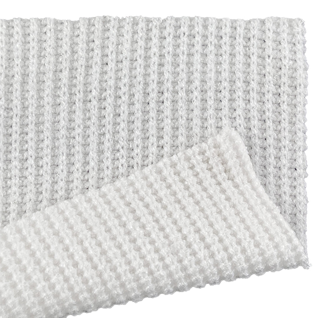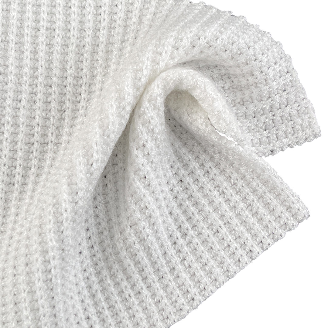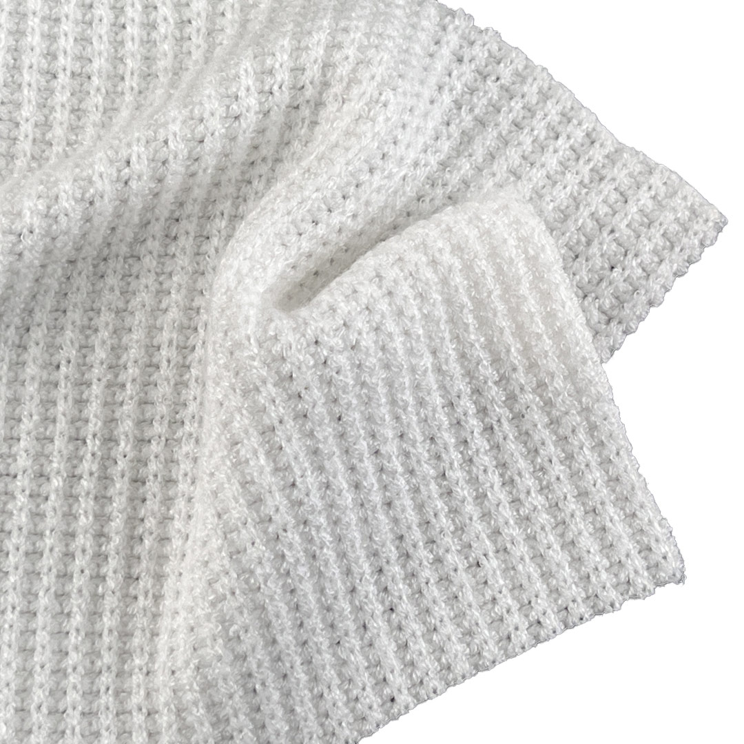 Polyester provides strength, colorfastness, and wrinkle resistance, while the 6% Spandex delivers smooth stretch and reliable recovery for ease of movement and a contoured fit. Weighing 340gsm, this heavyweight fabric offers substantial warmth and structure, making it well-suited for cooler weather garments that demand both style and functionality. Its textured surface and breathable construction allow it to adapt to elegant dresses, layered cardigans, and cozy sweaters. The fabric maintains its cable and jacquard definition, resists pilling, and offers consistent performance with proper care.
