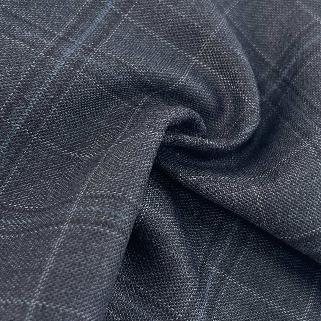 Weighing 345g/m (6.8oz), this substantial fabric combines 84% polyester, 14% viscose, and 2% spandex to create a premium suiting material with definitive crisp hand feel and structured drape. Designed specifically for suits and blazers, this sophisticated blend delivers professional elegance through its substantial construction while ensuring practical comfort through its strategic fiber composition. The high polyester content provides exceptional durability and reliable shape retention, maintaining garments' sharp professional silhouette through extended wear. Viscose contributes breathability and subtle softness, enhancing comfort while preserving the fabric's crisp texture.
