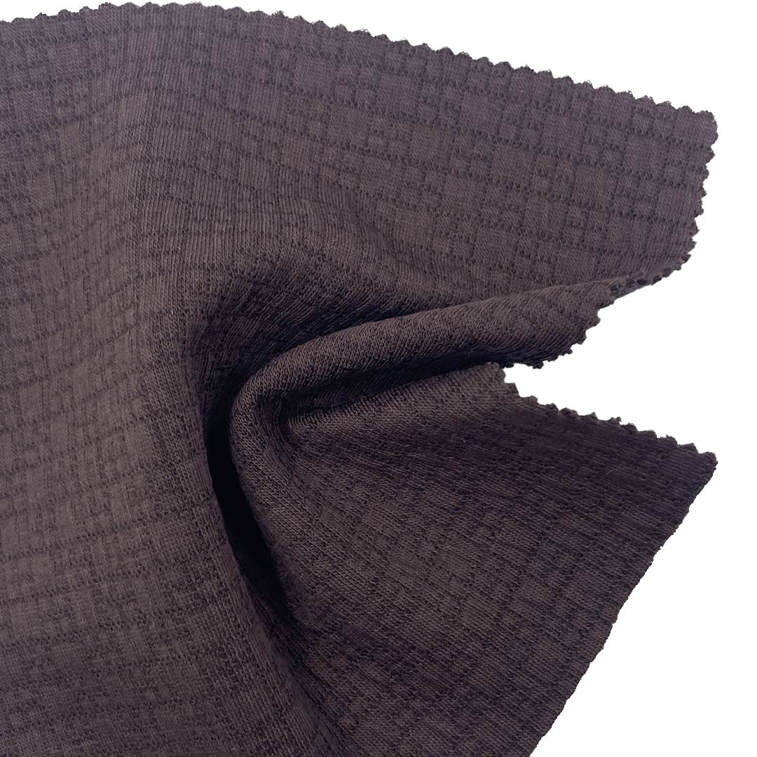 Composed of 49% cotton, 48% polyester, and 3% spandex at a weight of 350gsm, this Jacquard Fabric offers a luxurious texture and strong structure. The cotton ensures a soft, breathable touch, while polyester reinforces the fabric with durability and color retention. The added spandex gives the fabric gentle elasticity for improved comfort and flexibility during movement. Its jacquard weave creates a rich, textured surface with intricate patterns, providing both visual depth and tactile sophistication. Ideal for hoodies, sweatshirts, pants, long sleeve tops, jackets, cardigans, and zip jackets, this heavy-weight fabric maintains excellent body and drape. Perfect for both fashion and functional sportswear collections, it delivers lasting comfort, shape stability, and an elevated aesthetic for high-end casual apparel.