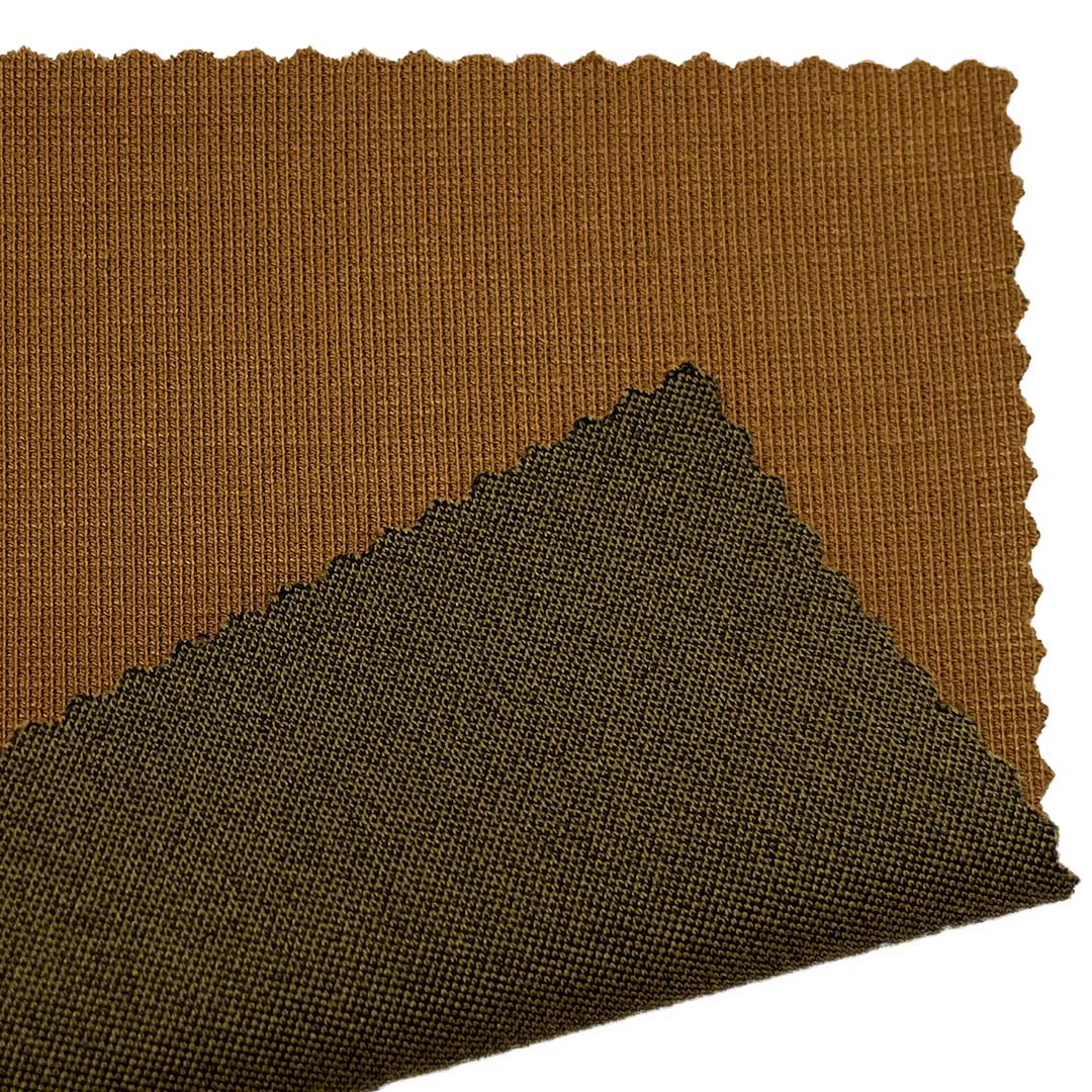 Engineered for structure and durability, our 360gsm double knit fabric combines 46% Viscose, 46% Polyamide, and 8% Spandex to create a robust material with a distinct crisp hand feel. This heavyweight fabric features a double-knit construction that provides exceptional stability and shape retention while delivering a polished, structured appearance ideal for tailored shorts and pants. Viscose ensures breathability, moisture-wicking comfort, and a smooth drape, Polyamide adds strength, abrasion resistance, and dimensional stability, and the 8% Spandex offers excellent stretch and recovery for ease of movement.