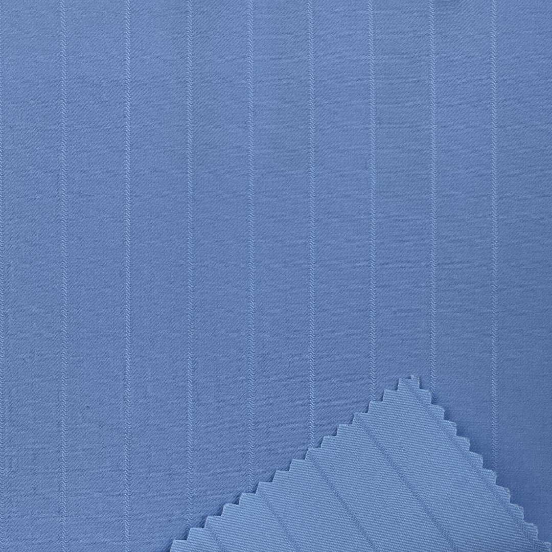 Polyester provides exceptional durability and reliable shape retention, ensuring garments maintain their professional silhouette through extended wear. Viscose enhances the fabric's smooth hand feel while contributing subtle softness and breathability. The strategic spandex inclusion offers optimal flexibility for natural movement while supporting the tailored appearance. The refined texture adds visual depth and dimension to finished garments, creating sophisticated interest that elevates the professional aesthetic. During tailoring, the material demonstrates excellent workability, cutting cleanly along textured patterns and pressing to sharp, well-defined edges.