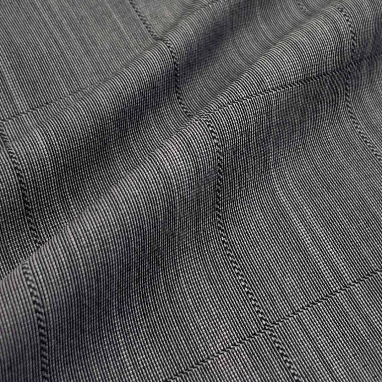 Weighing 370g/m (7.3oz), this substantial fabric combines 62% polyester, 36% viscose, and 2% spandex to create a premium suiting material with definitive crisp hand feel and structured drape. Designed specifically for suits and blazers, this sophisticated blend delivers professional elegance through its substantial weight while ensuring exceptional comfort through its balanced fiber composition. Polyester provides reliable durability and shape retention, maintaining garments' sharp silhouette through extended professional wear.