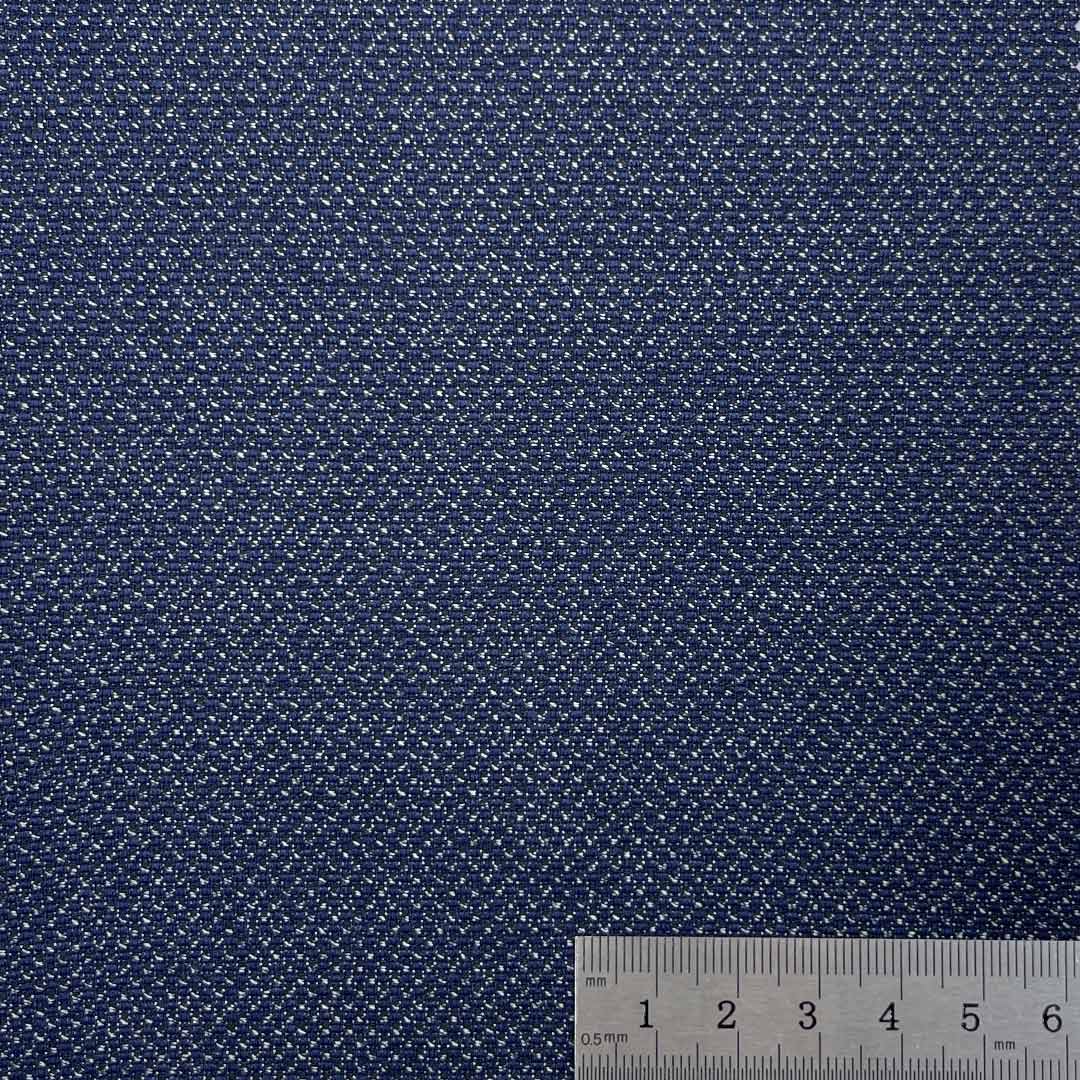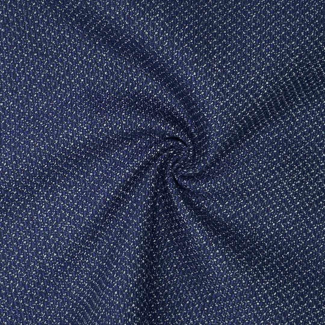 Weighing 370g/m (7.3oz), this versatile suiting fabric is crafted from 65% polyester, 33% viscose, and 2% spandex. It uniquely combines a noticeably soft and pleasant hand feel with a distinct textured surface, designed to provide both comfort and visual sophistication for professional attire.