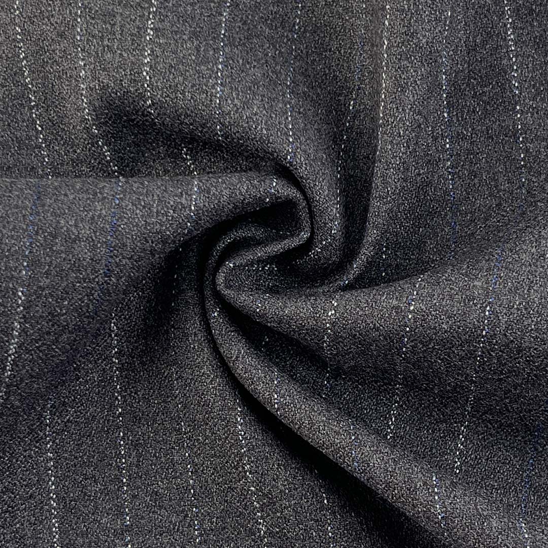 Polyester provides reliable durability and shape retention, maintaining clean, precise silhouettes through extended professional wear. Viscose contributes significant softness and breathability, enhancing the fabric's overall comfort and smooth tactile quality. The strategic 2% spandex inclusion offers optimal flexibility and recovery, allowing natural movement while supporting the fabric's elegant drape characteristics. The substantial weight and fine weave work in harmony to provide a polished fall and excellent tailoring performance, making this material particularly suitable for creating suit fabric that balances refined aesthetics with practical ease.