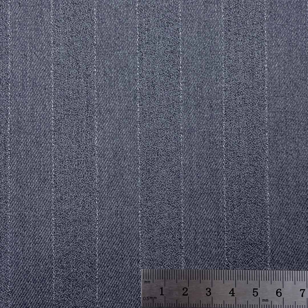 Weighing 390g/m (7.7oz), this versatile suit fabric combines 74% polyester, 24% viscose, and 2% spandex to create a substantial suiting material with a crisp hand feel and distinctive textured surface. The heavyweight construction provides excellent structure and presence, while the balanced fiber composition ensures both durability and comfort.