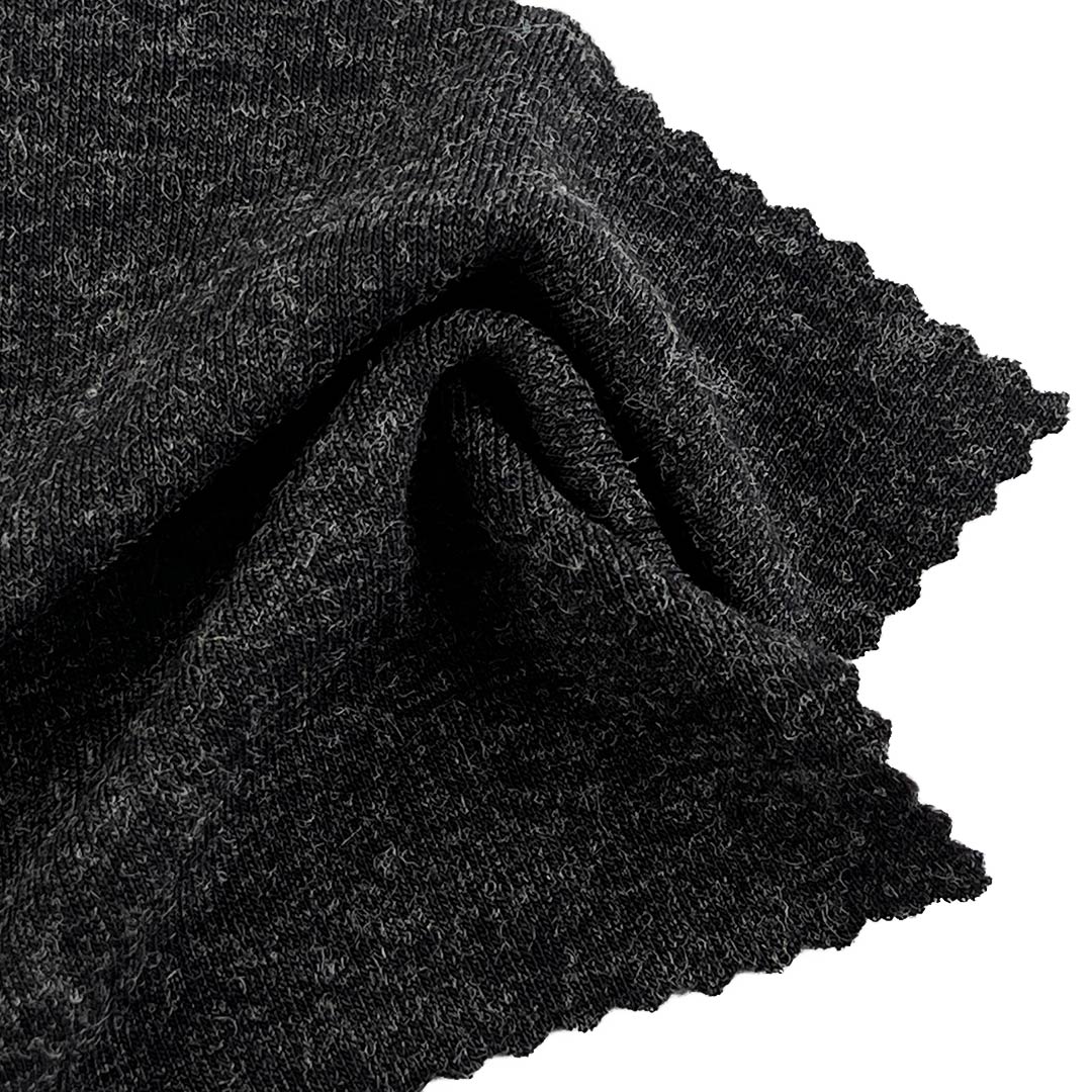 Indulge in the luxurious warmth and exceptional softness of our 390gsm luxury cashmere fabric, expertly crafted from 32% Wool, 13% Viscose, and 55% Polyester. This heavyweight fabric offers a cashmere-like soft hand feel that provides unparalleled comfort and coziness for long sleeve shirts and sweaters designed for cold weather. The wool content delivers natural insulation and breathability, ensuring warmth without bulk, while viscose adds smoothness, moisture-wicking properties, and a refined drape. Polyester enhances the fabric's durability, shape retention, and resistance to wrinkles and pilling, making it ideal for garments that require both luxury and practicality.