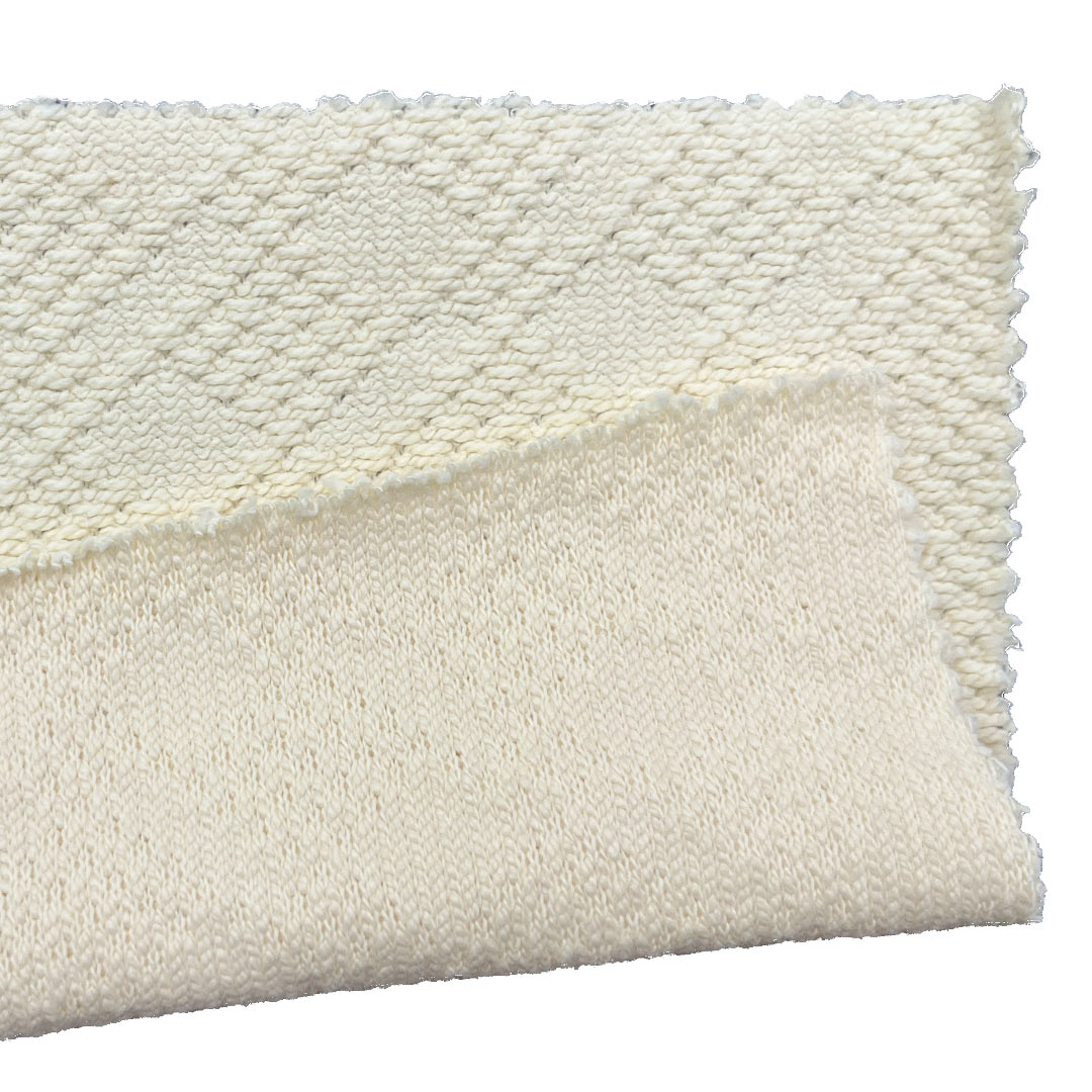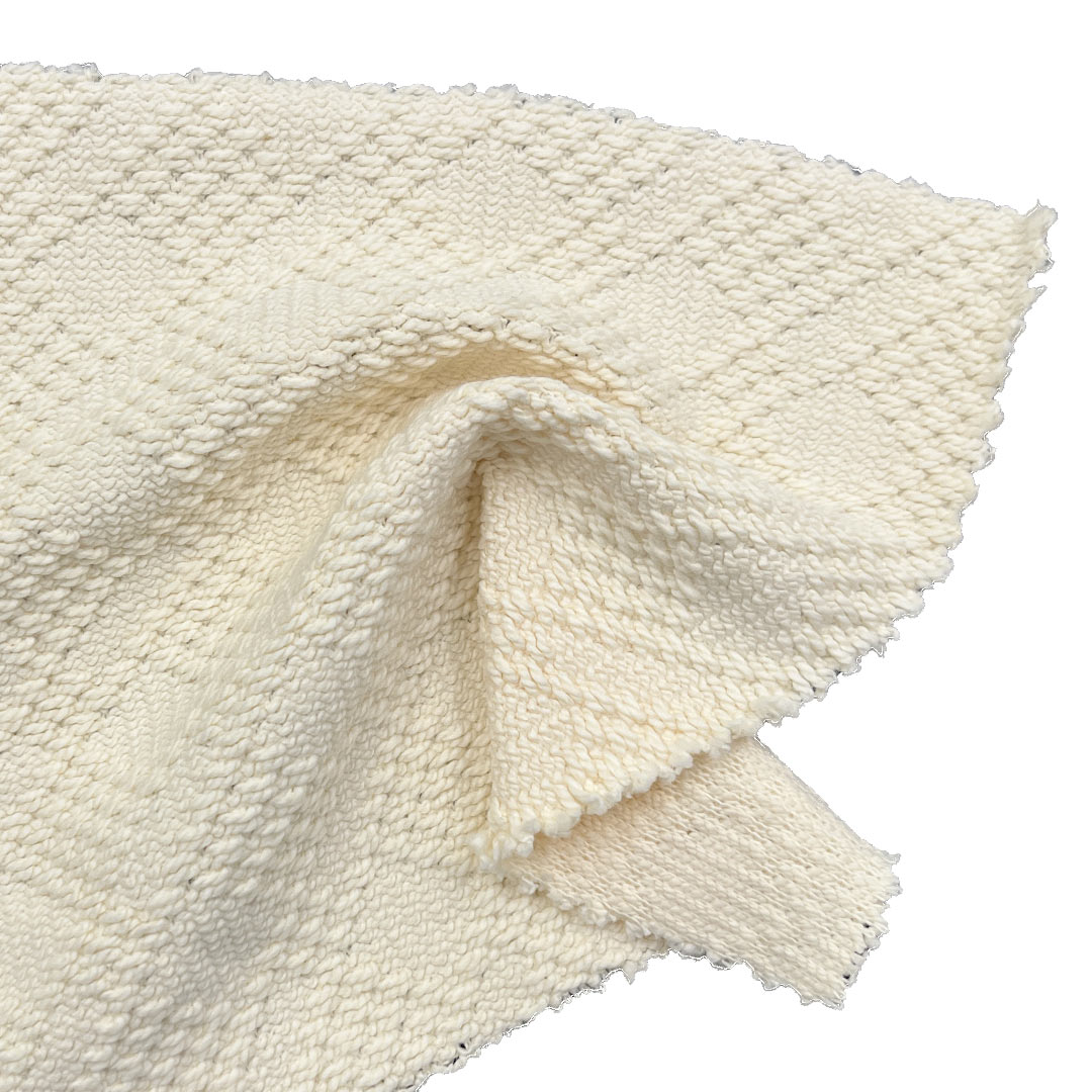 This 390gsm (13.76 oz) 100% cotton jacquard fabric, with its textured patterns and smooth, soft hand feel, is an exquisite choice for hoodies, dresses, pants, sweatshirts, and sportswear. Made from high-quality cotton fibers, the fabric is woven with jacquard techniques to create intricate designs, offering a layered surface that feels smooth and refined while adding visual sophistication. The all-cotton composition ensures breathability, moisture absorption, and hypoallergenic comfort, suitable for sensitive skin. The 390gsm weight provides excellent drape and structure, giving hoodies and dresses an elegant silhouette, while pants and sweatshirts remain durable and stylish. The fabric offers moderate stretch and durability, maintaining pattern clarity and softness after repeated washing. Ideal for various occasions, from casual wear and light sports to fashion-forward outfits, it beautifully combines aesthetics and functionality. Easy to care for, the fabric is machine washable, resistant to pilling and deformation, and retains vibrant colors over time. Whether for street-style hoodies, elegant dresses, or functional sportswear, this jacquard fabric meets diverse consumer demands for fashion, comfort, and individuality with outstanding quality.