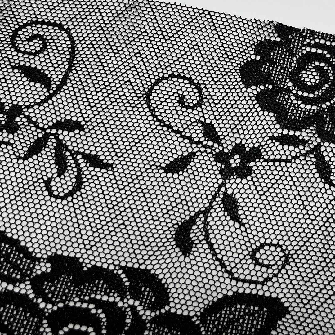 Cotton adds natural softness, absorbency, and skin-friendly comfort, while Nylon contributes strength, elasticity, and enhanced durability, making the fabric resistant to wear and tear. Featuring intricate openwork patterns characteristic of lace, this fabric adds a touch of timeless femininity and sophistication to any design. Its lightweight and airy construction allows for comfortable movement and graceful drape, whether used as an all-over fabric, a decorative overlay, or an accent trim.