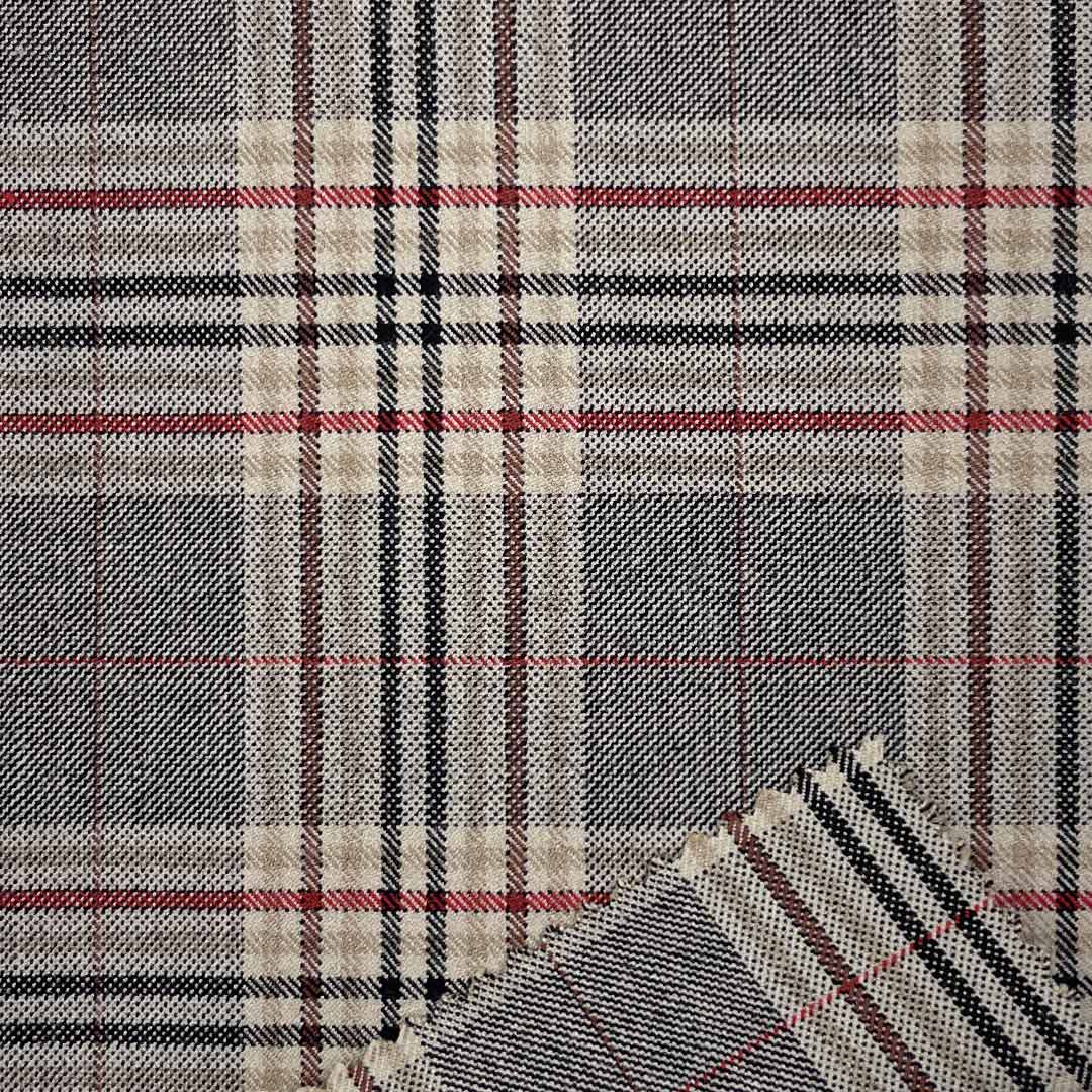 Weighing 405g/m (8.0oz), this substantial fabric combines 69% polyester, 27% viscose, and 4% spandex to create a premium blazer fabric with fine texture and elegant drape. Designed for suits and blazers, this sophisticated blend delivers fluid movement through its graceful drape characteristics while offering enhanced flexibility via its generous spandex content. Polyester provides exceptional durability and reliable shape retention, ensuring garments maintain their clean silhouette through extended wear.